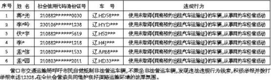 针对非法营运车辆严重扰乱道路运输市场秩序、损害城市文明形象和营商环境,以及威胁乘客安全和社会治安的问题,营口市交通运输局采取严厉措施,对违法行为实施行政处罚,压缩违法行为的生存空间,有效遏制违法违规营运行为。依据《中华人民共和国政府信息公开条例》规定,对2026年第一季度,共计6起非法营运网约车驾驶员使用未取得《网络预约出租汽车运输证》的车辆,擅自从事网约车经营活动的违法违规行为进行公示,具体内容如下: