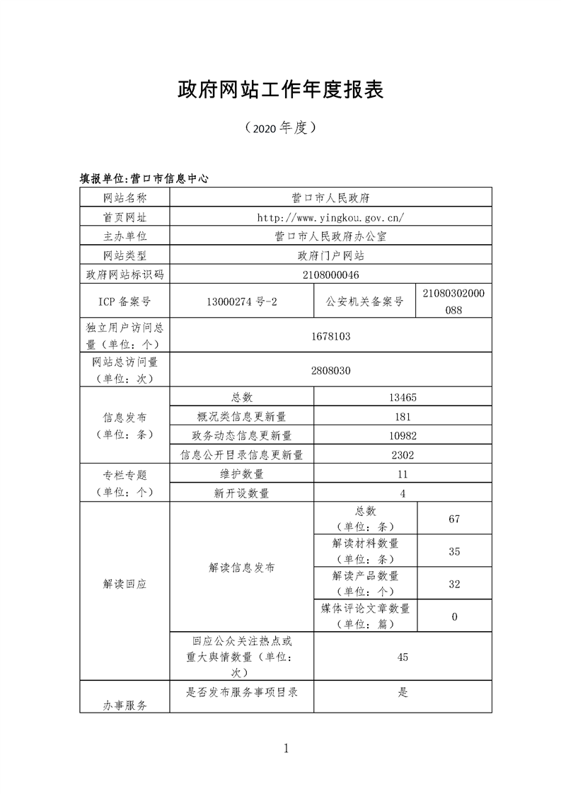 当前位置:首页 > 要闻动态 > 专题专栏 > 网站年度报表 > 2020 > 营口市政府网站工作年度报表 > 正文