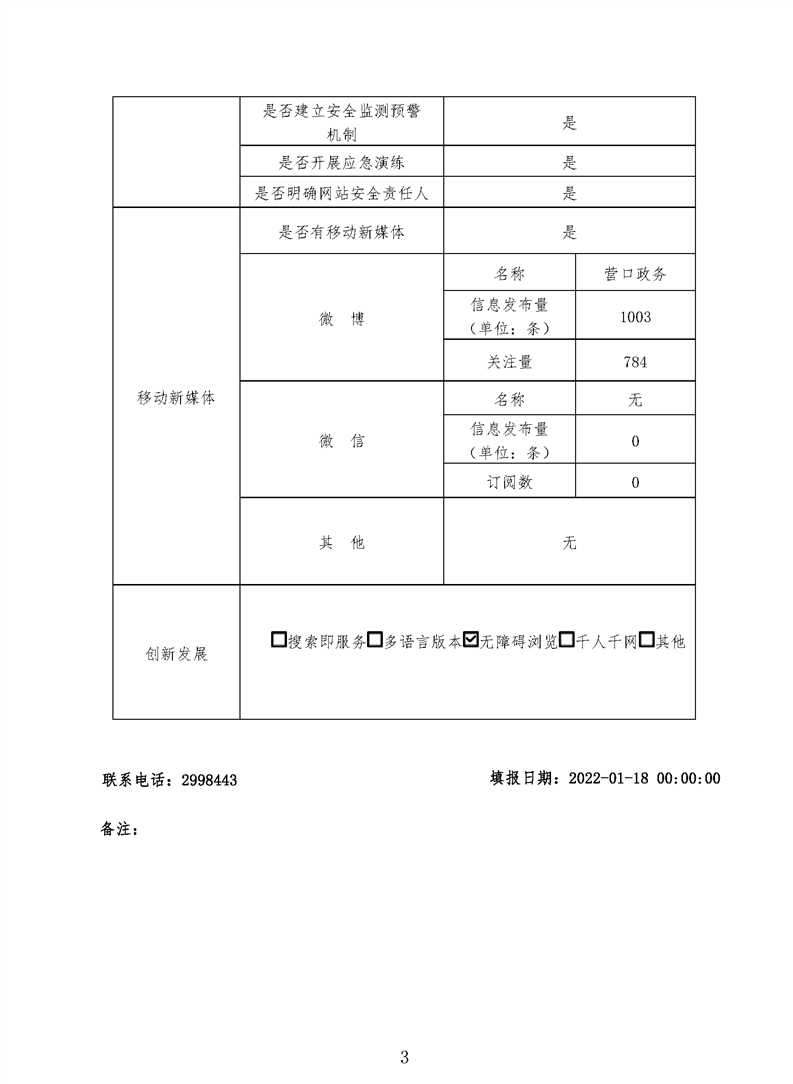 当前位置:首页 > 要闻动态 > 专题专栏 > 网站年度报表 > 2021 > 营口市政府网站工作年度报表 > 正文