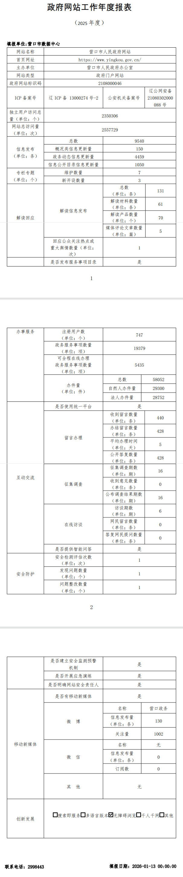 当前位置:首页 > 要闻动态 > 专题专栏 > 网站年度报表 > 2025 > 营口市政府网站工作年度报表 > 正文