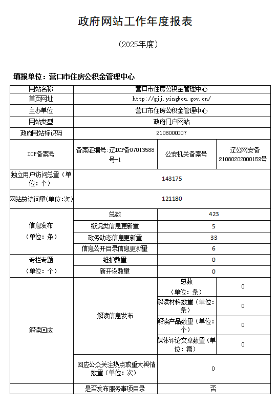 住房公积金管理中心政府网站工作年度报表(2025年度)