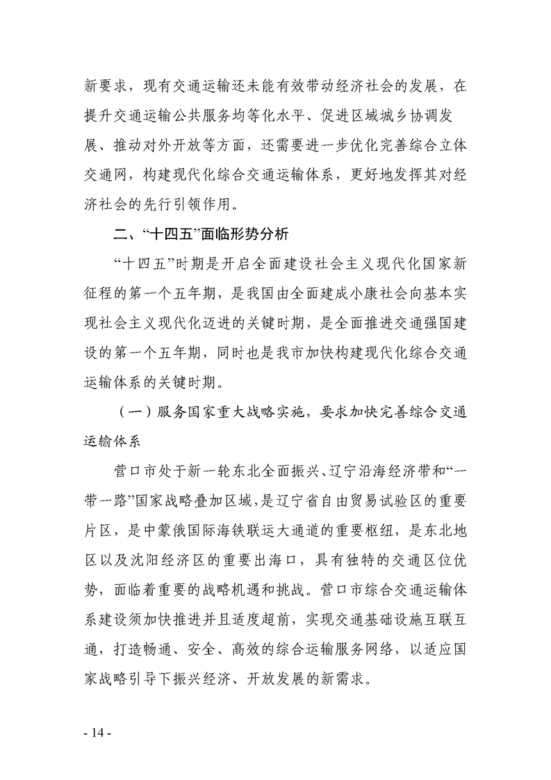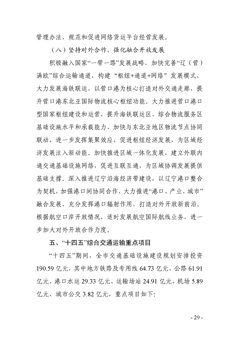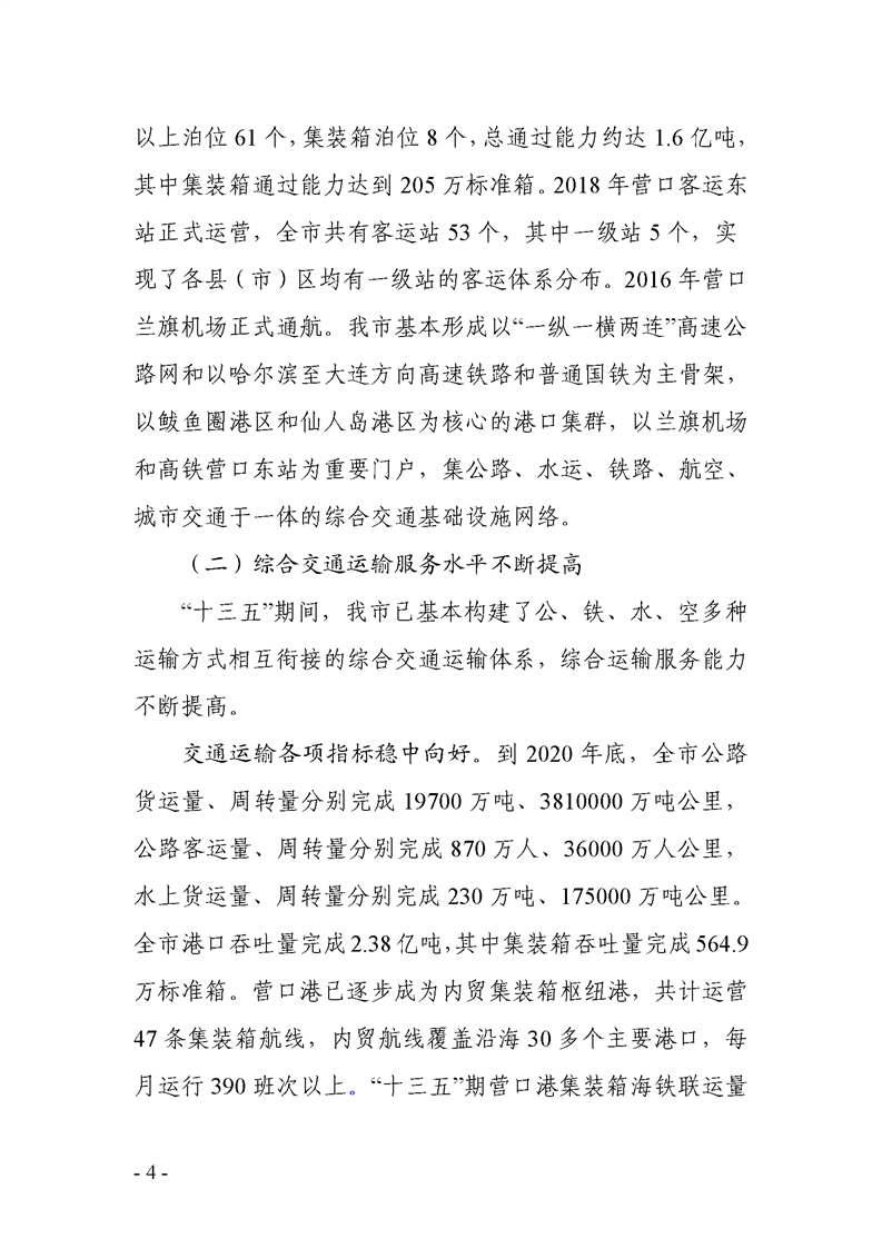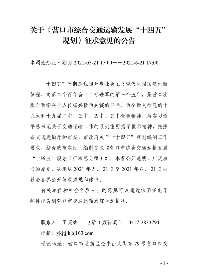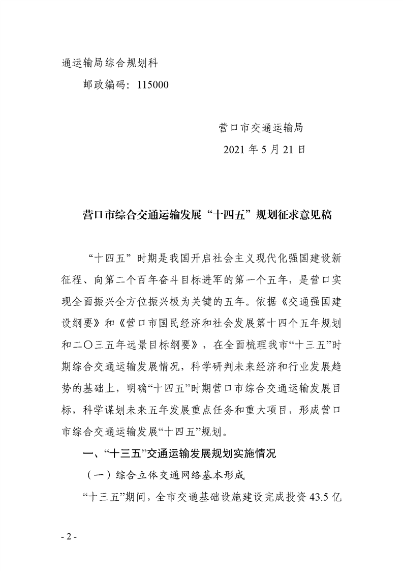 关于《营口市综合交通运输发展“十四五”规划》征求意见的公告