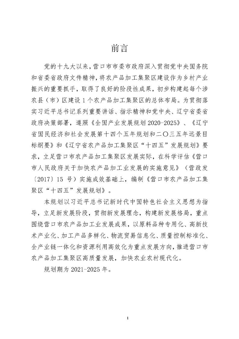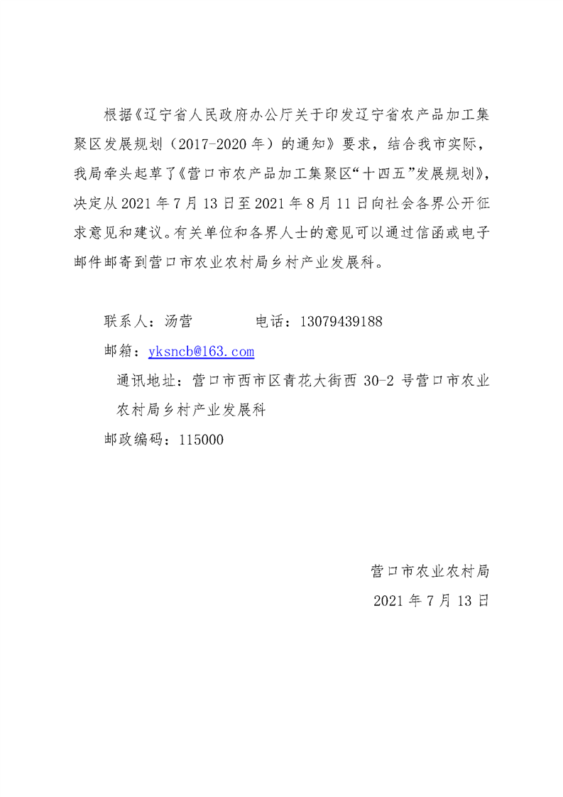 关于《营口市农产品加工集聚区“十四五”发展规划》征求意见的公告