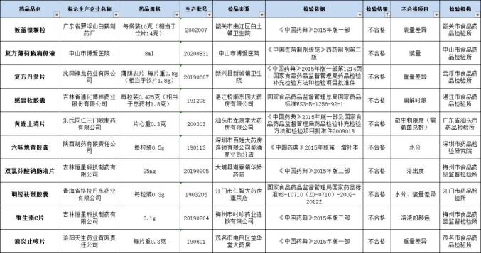 标示为广东省罗浮山白鹤制药厂生产的板蓝根颗粒(生产批号2002007)不合格,不合格项目装量差异。
