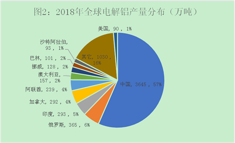 全球电解铝生产主要集中在亚洲、欧洲、美洲和大洋洲。2018年,全球前十位电解铝生产国依次是中国、俄罗斯、印度、加拿大、阿联酋、澳大利亚、挪威、巴林、沙特、美国,合计产量为5403万吨,占全球电解铝总产量的84.0%。