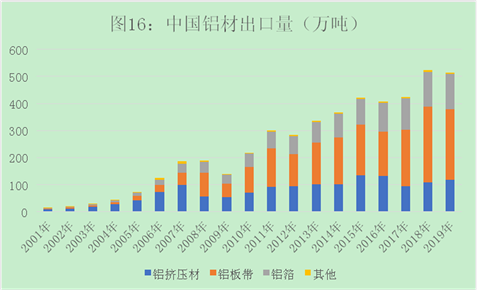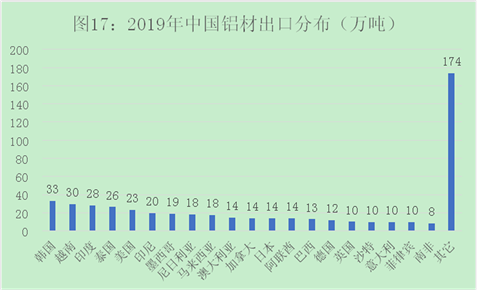 随着我国铝加工产业国际竞争力不断增强,铝材产品逐步突破占领国际市场,2019年我国铝材产品出口至全球212个国家和地区,出口量515万吨,占全球出口总量的25%左右。但随之而来的是越来越多的国家和地区对我国铝材出口采取贸易救济措施,2015-2019年我国铝加工行业新增贸易救济案件累计23起,2020年以来新增贸易救济案件已达11起,国际市场环境持续恶化,铝材出口面临严峻考验。此外,新冠疫情给全球经济造成了巨大冲击,国际环境雪上加霜。