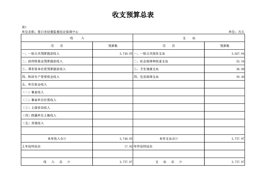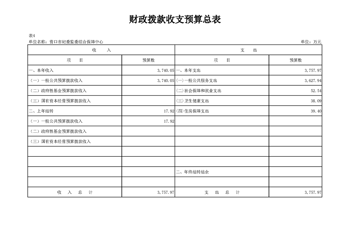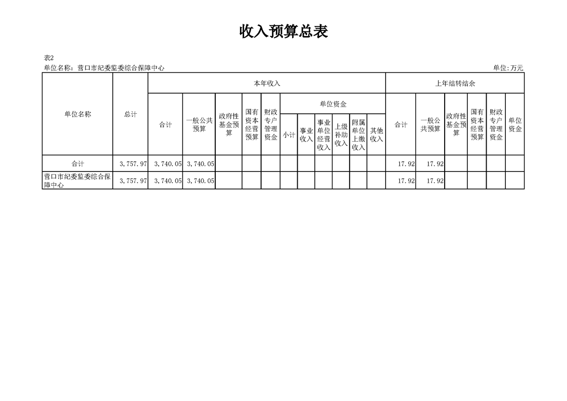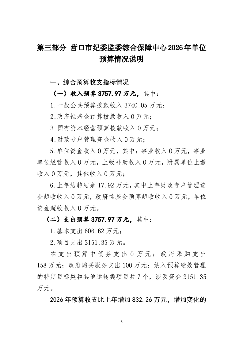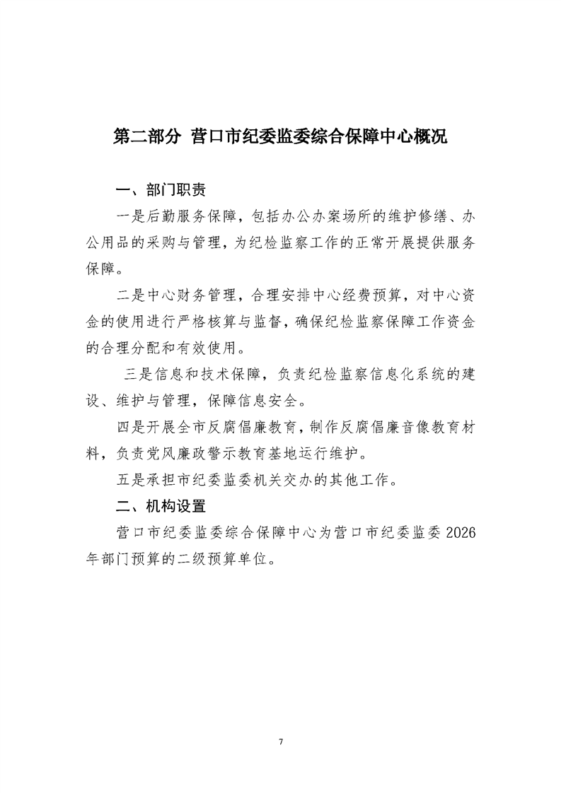 营口市纪委监委综合保障中心2026年度预算公开