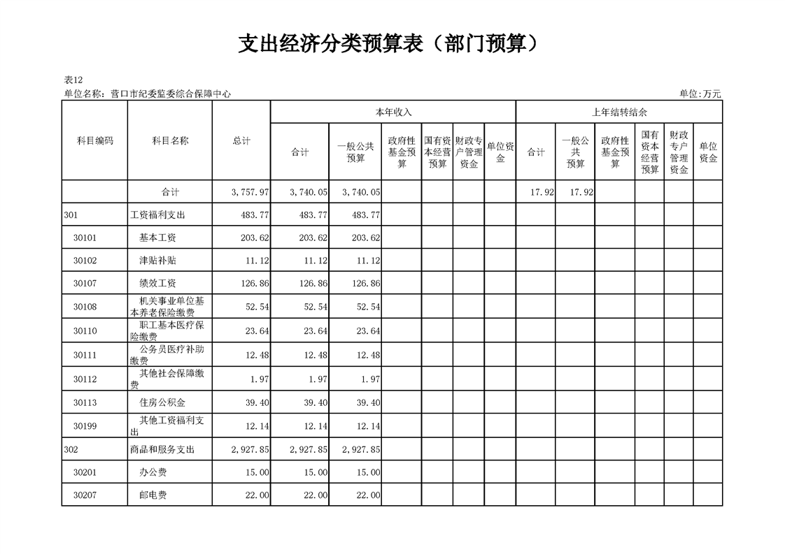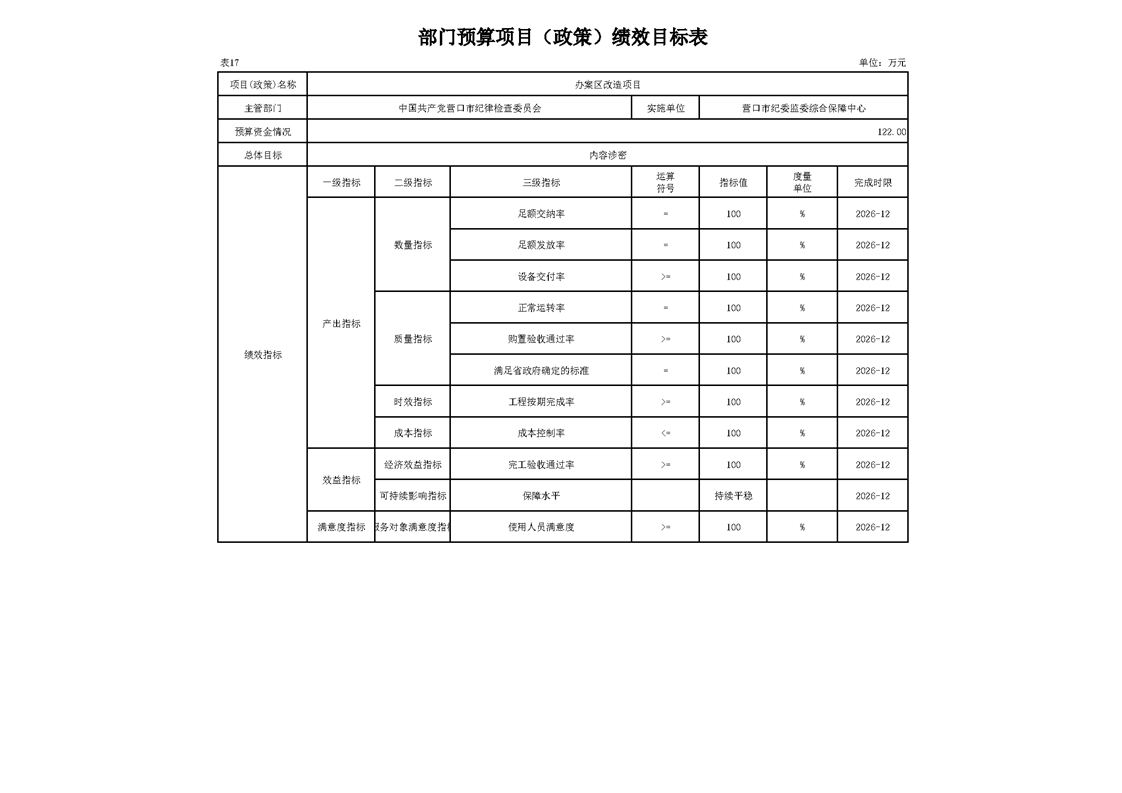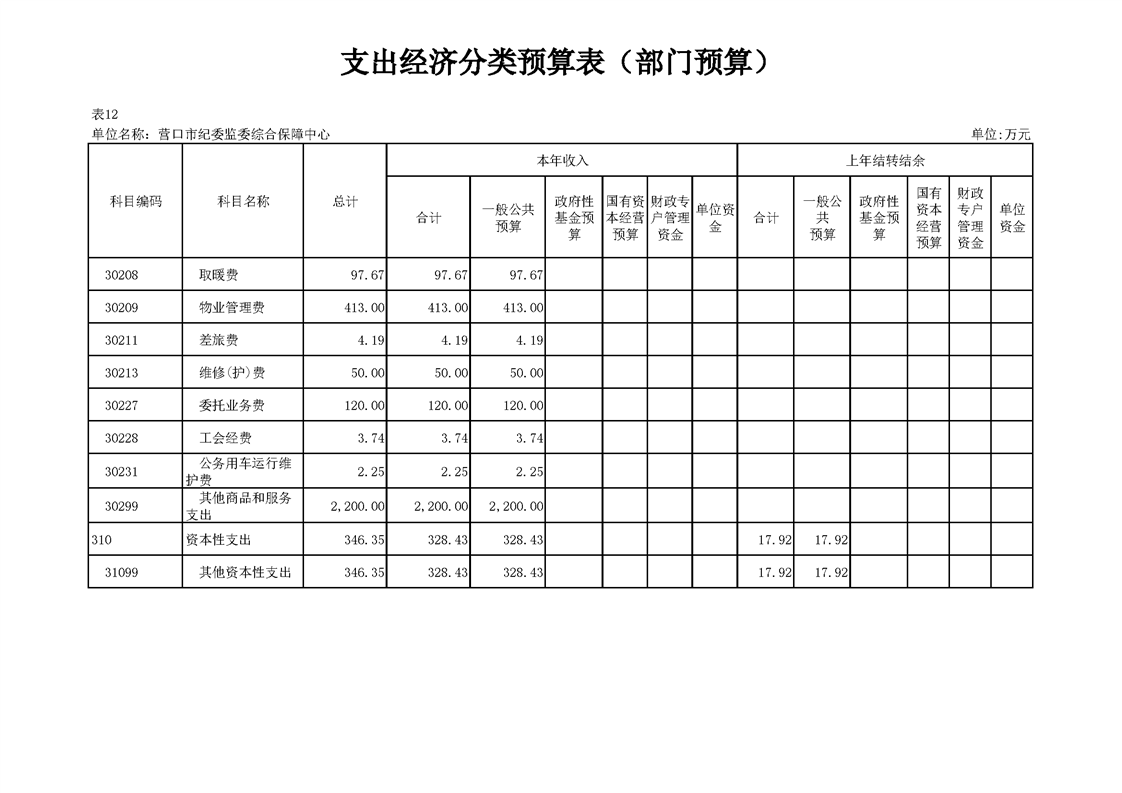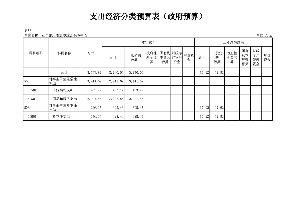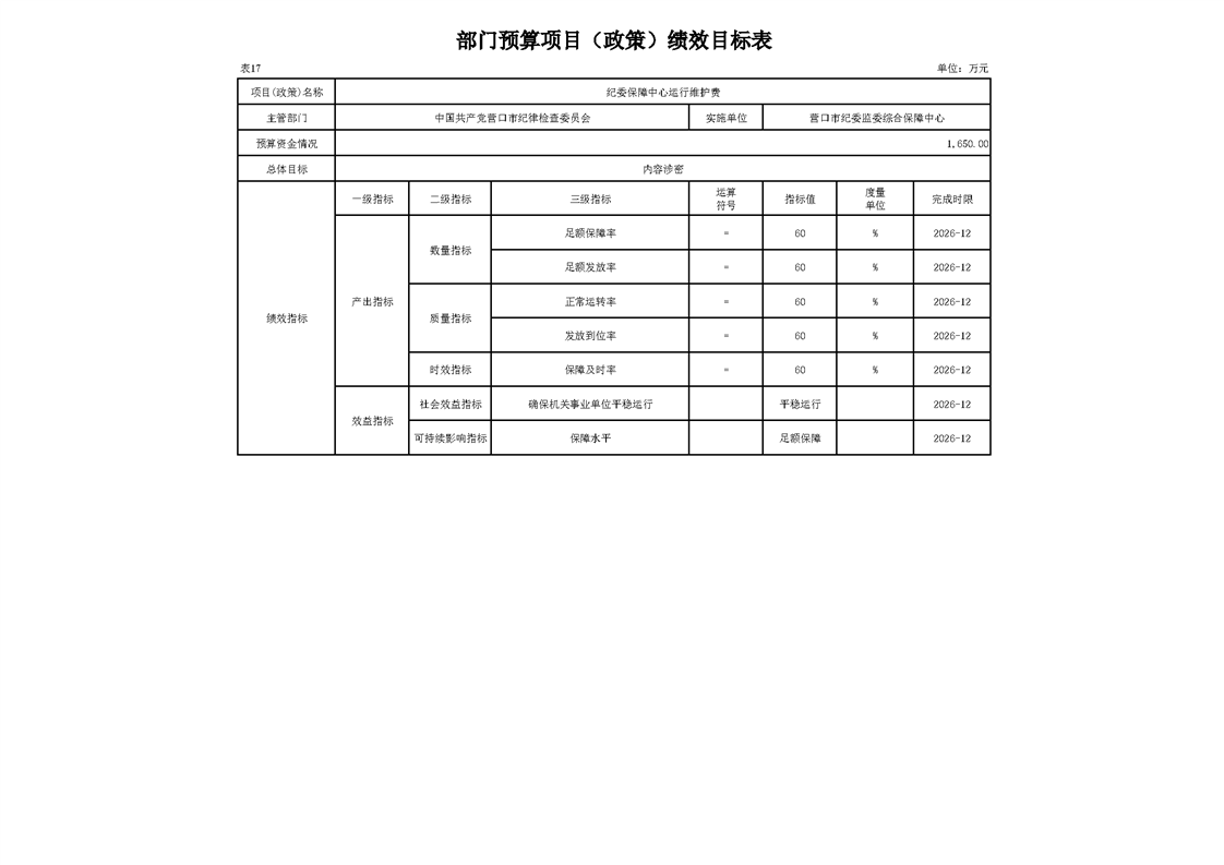 营口市纪委监委综合保障中心2026年度预算公开