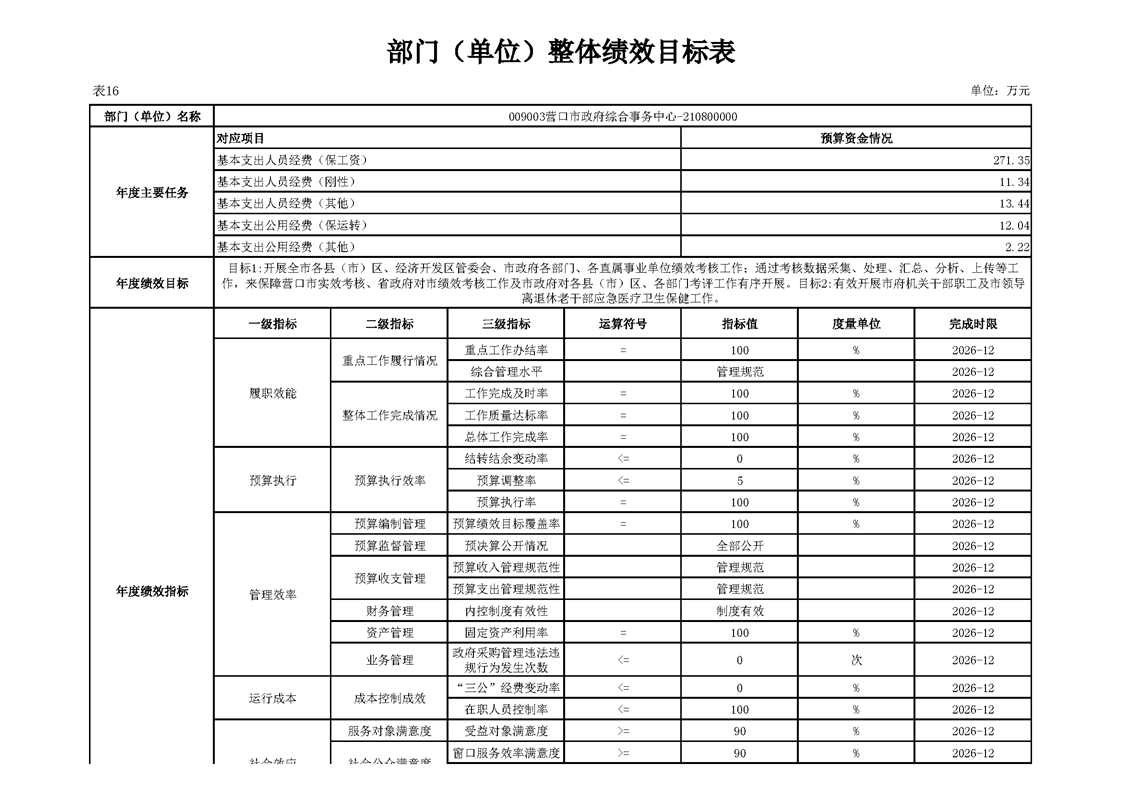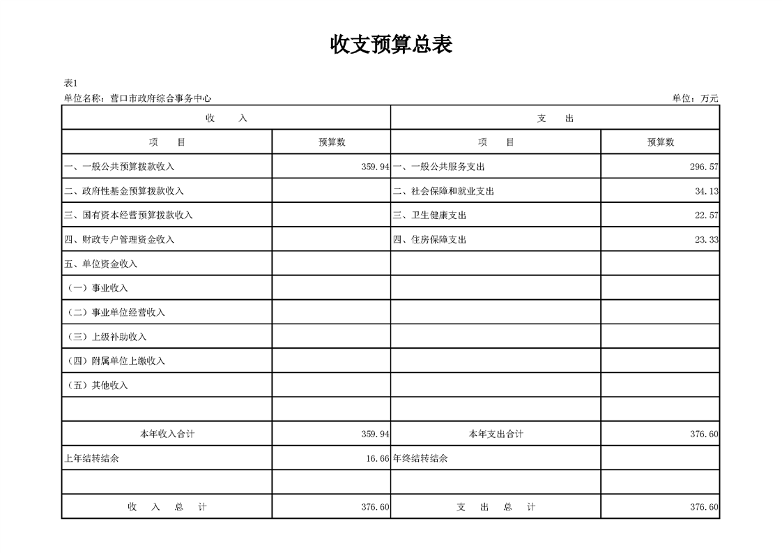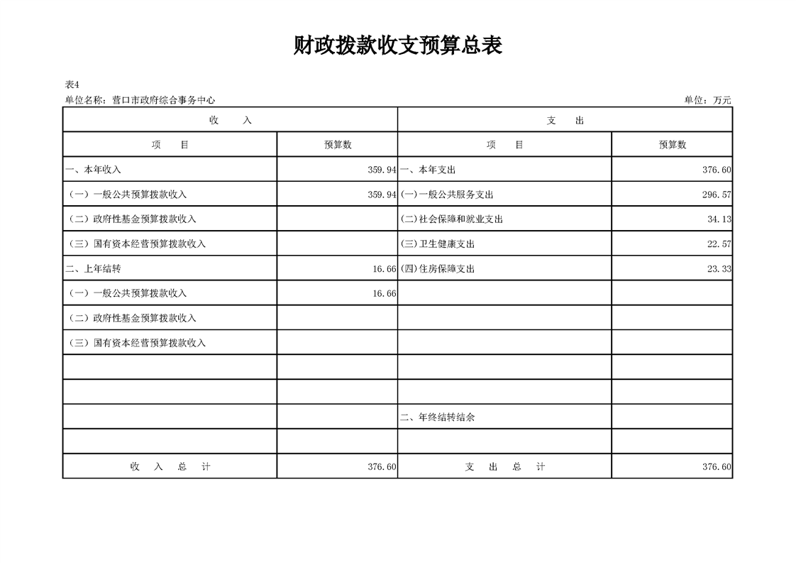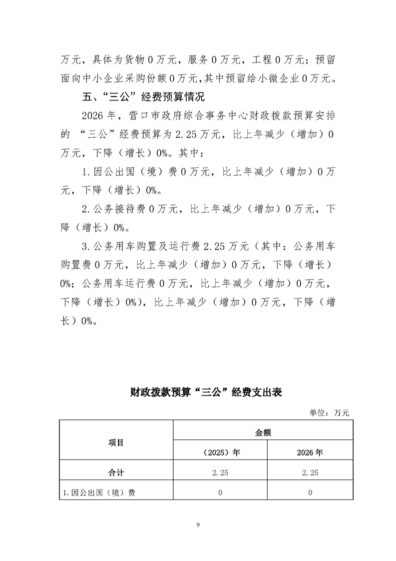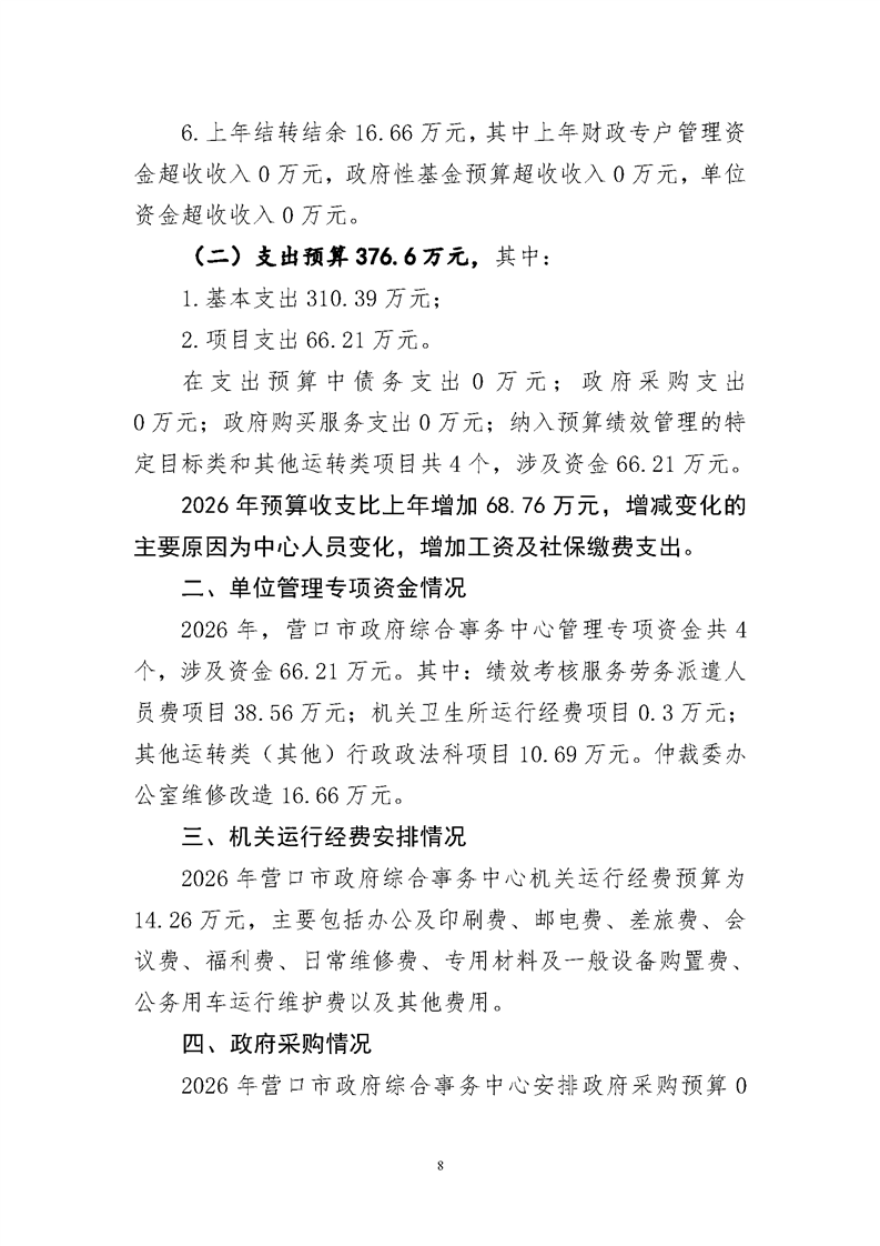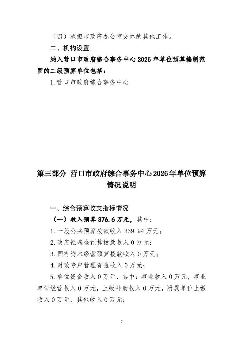 营口市政府综合事务中心2026年度单位预算