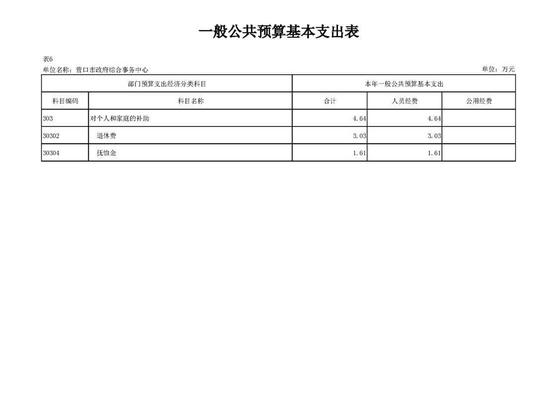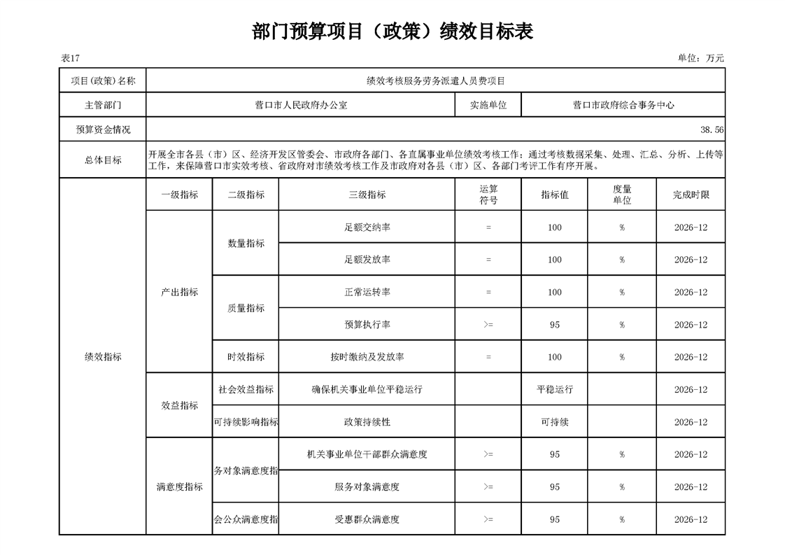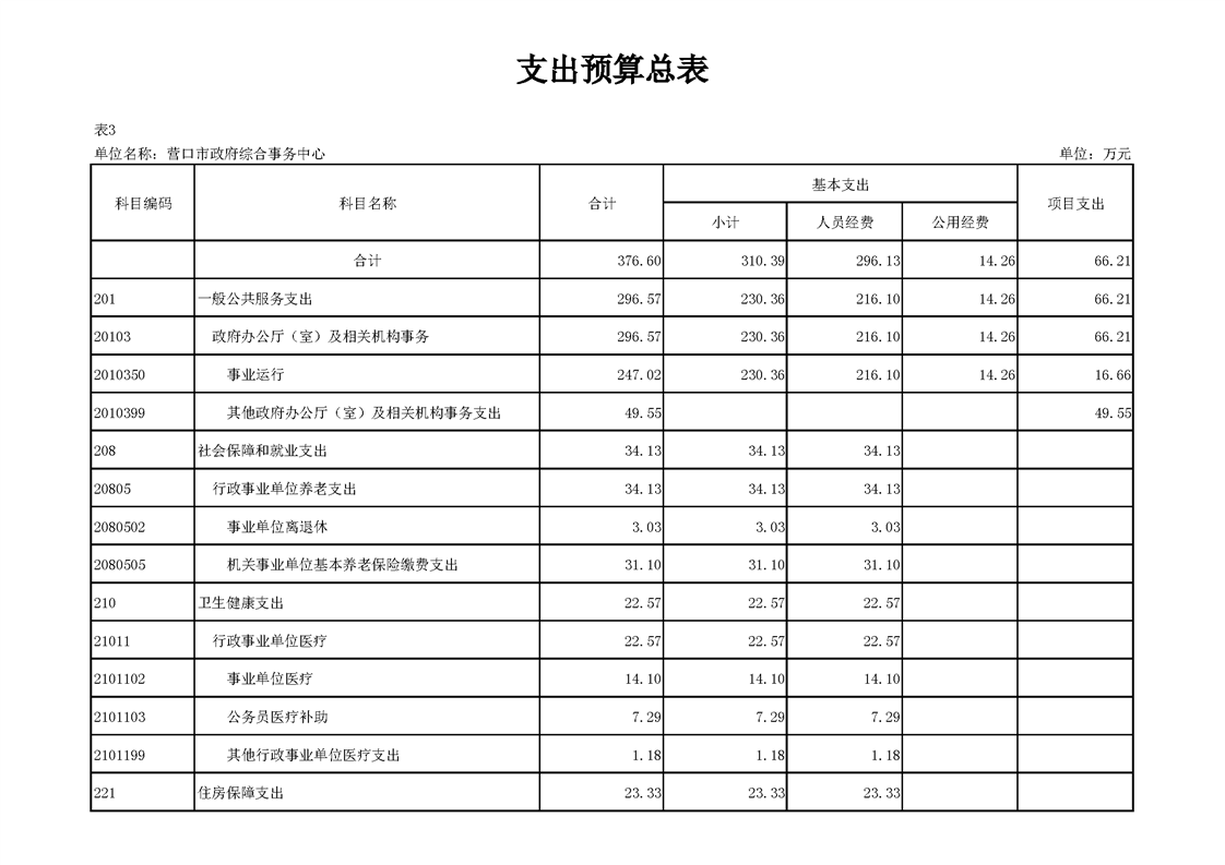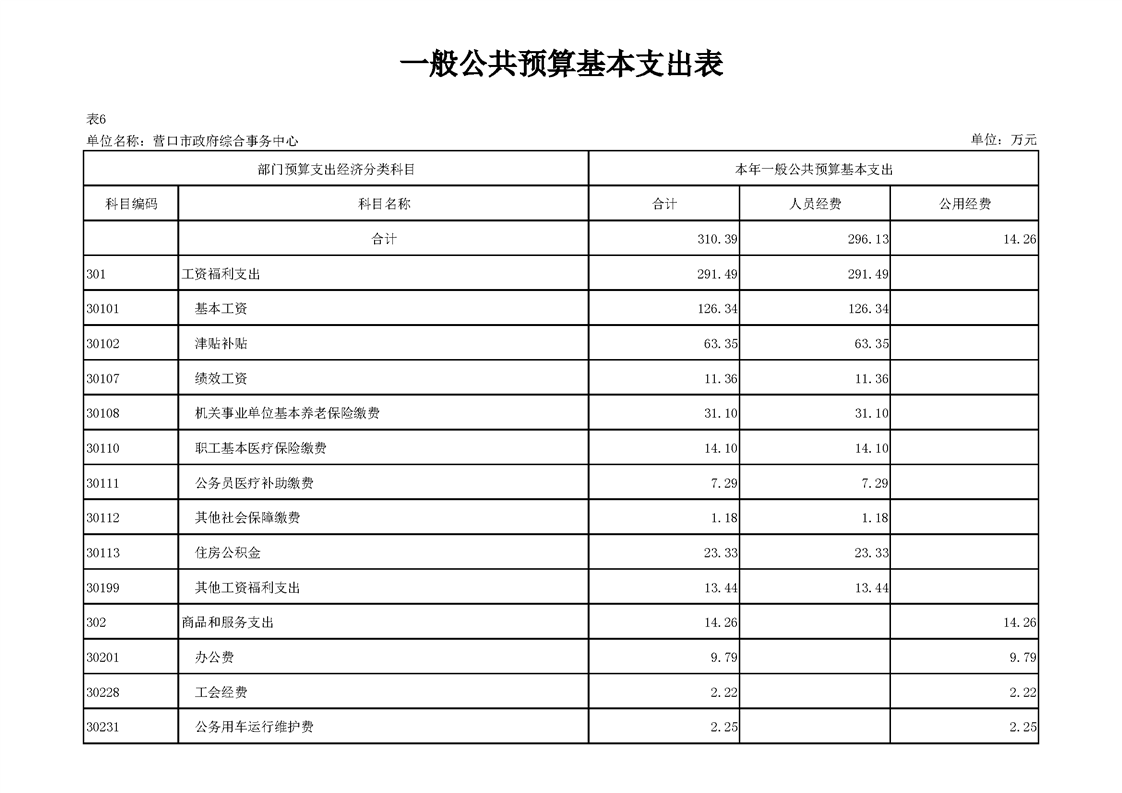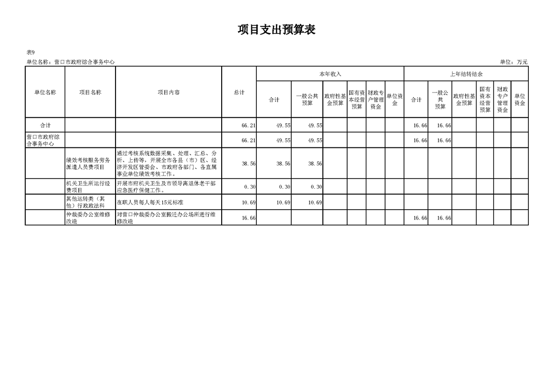营口市政府综合事务中心2026年度单位预算