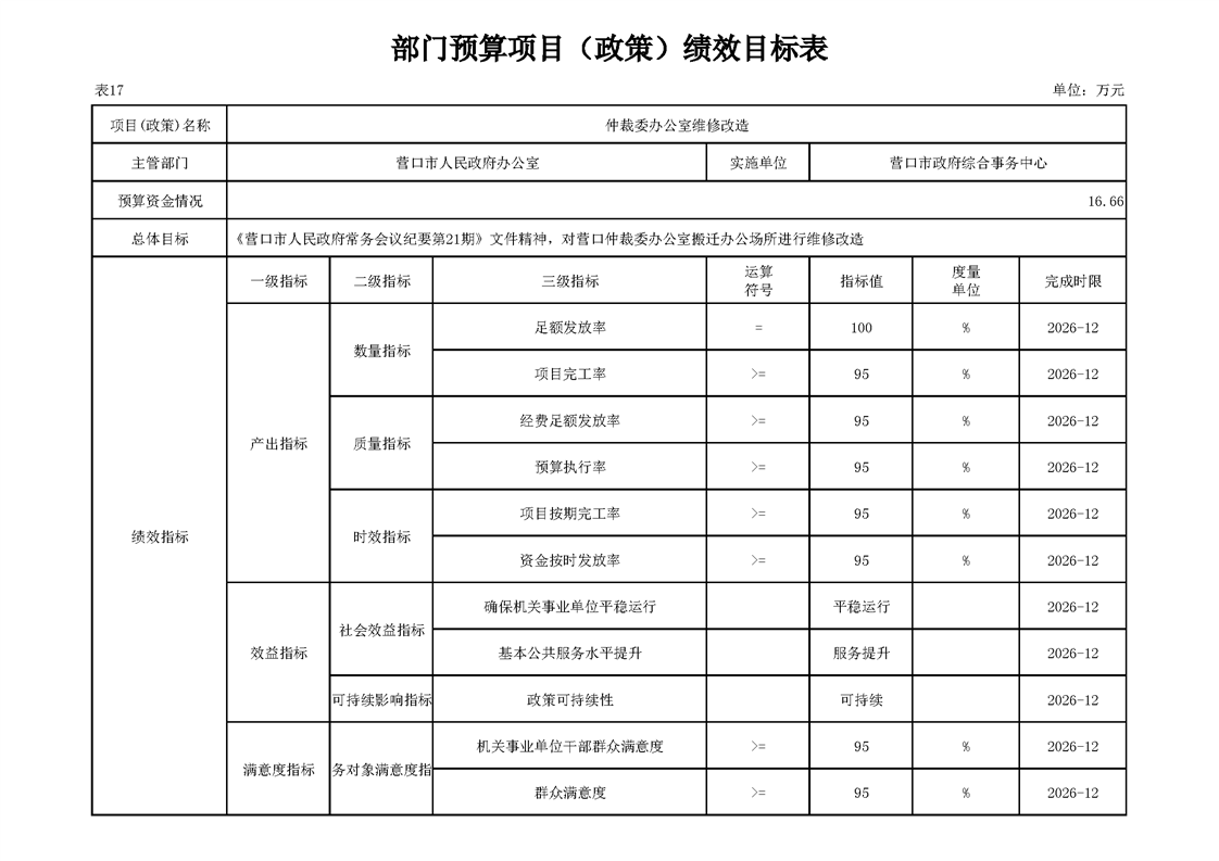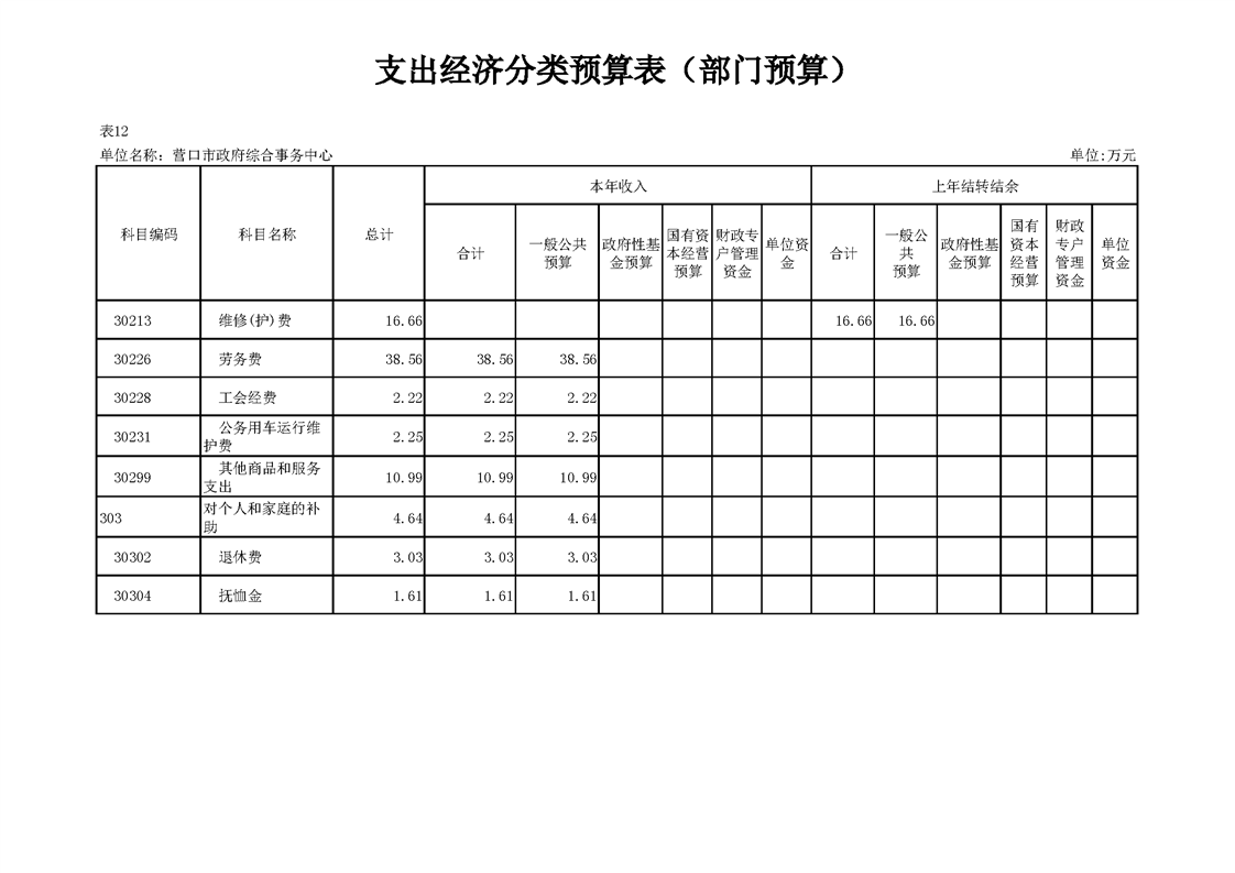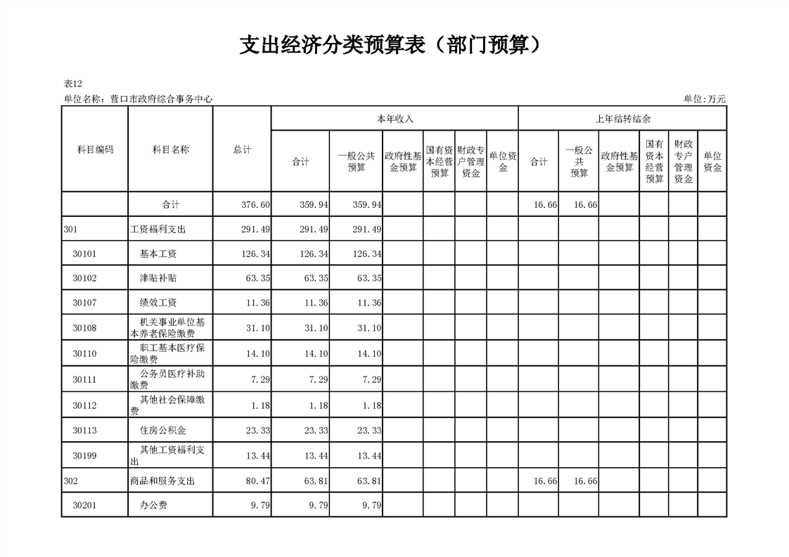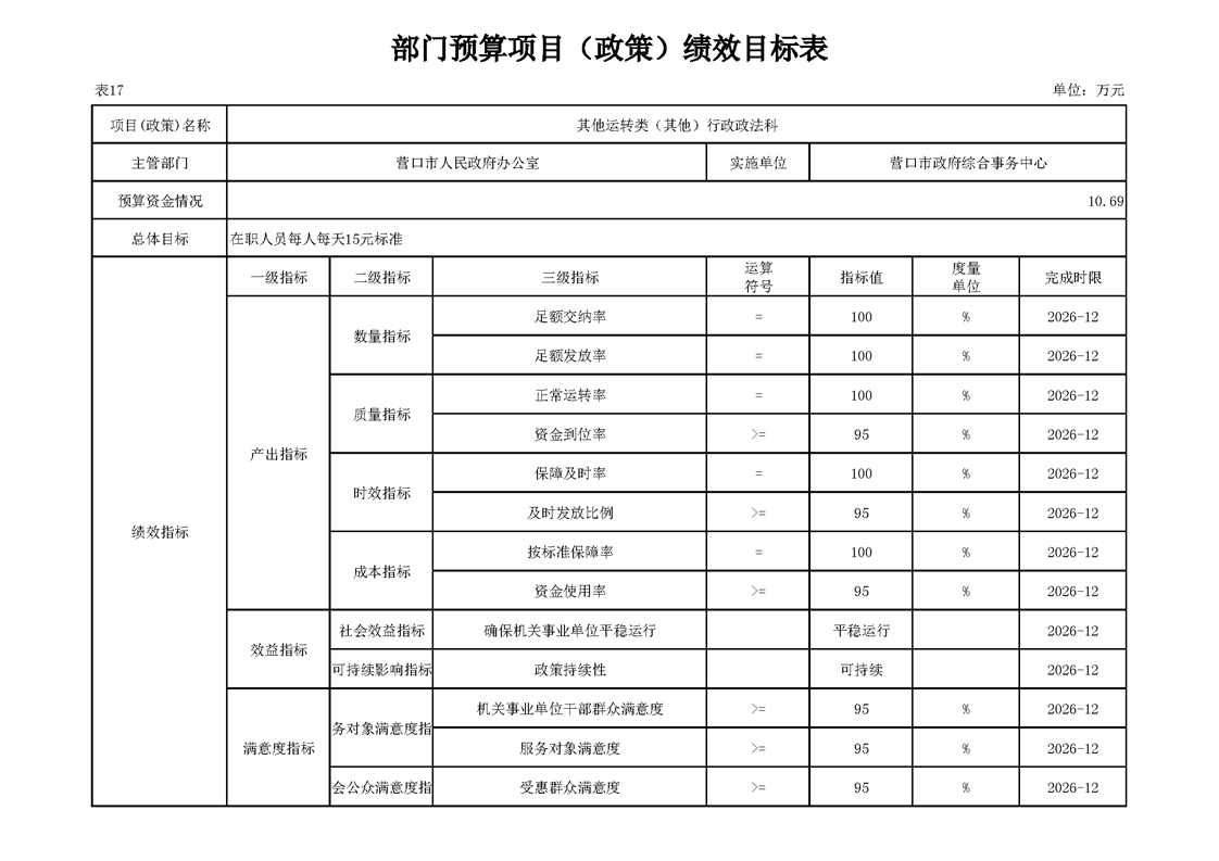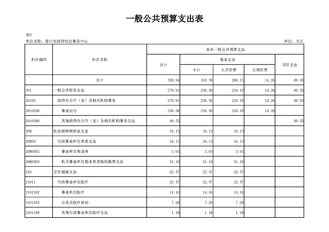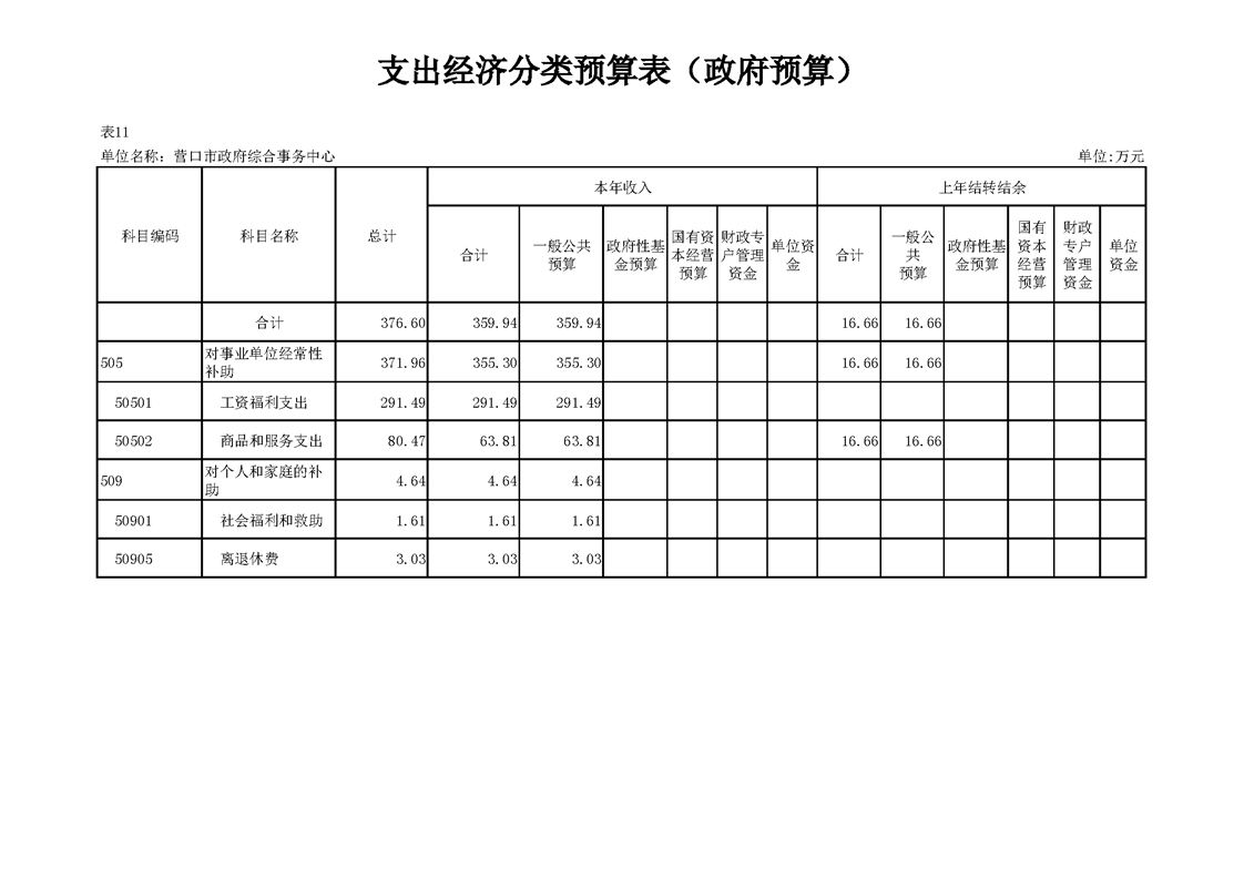 营口市政府综合事务中心2026年度单位预算