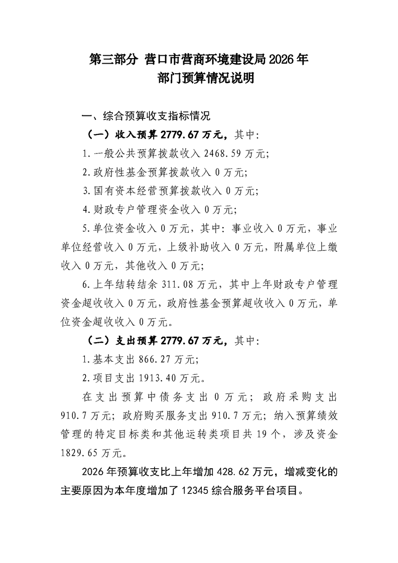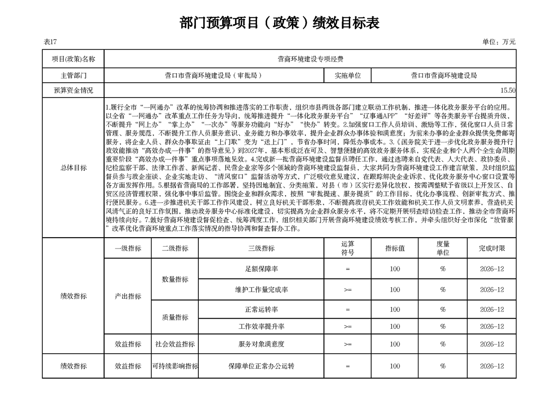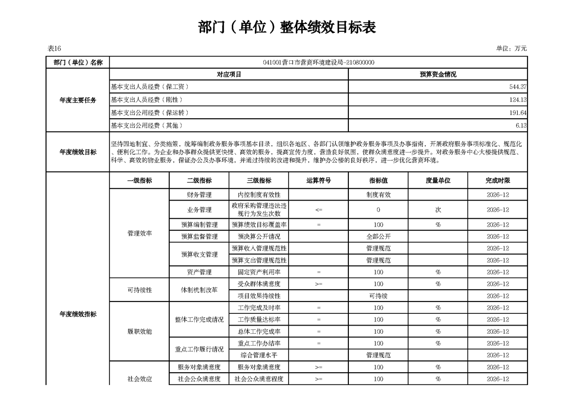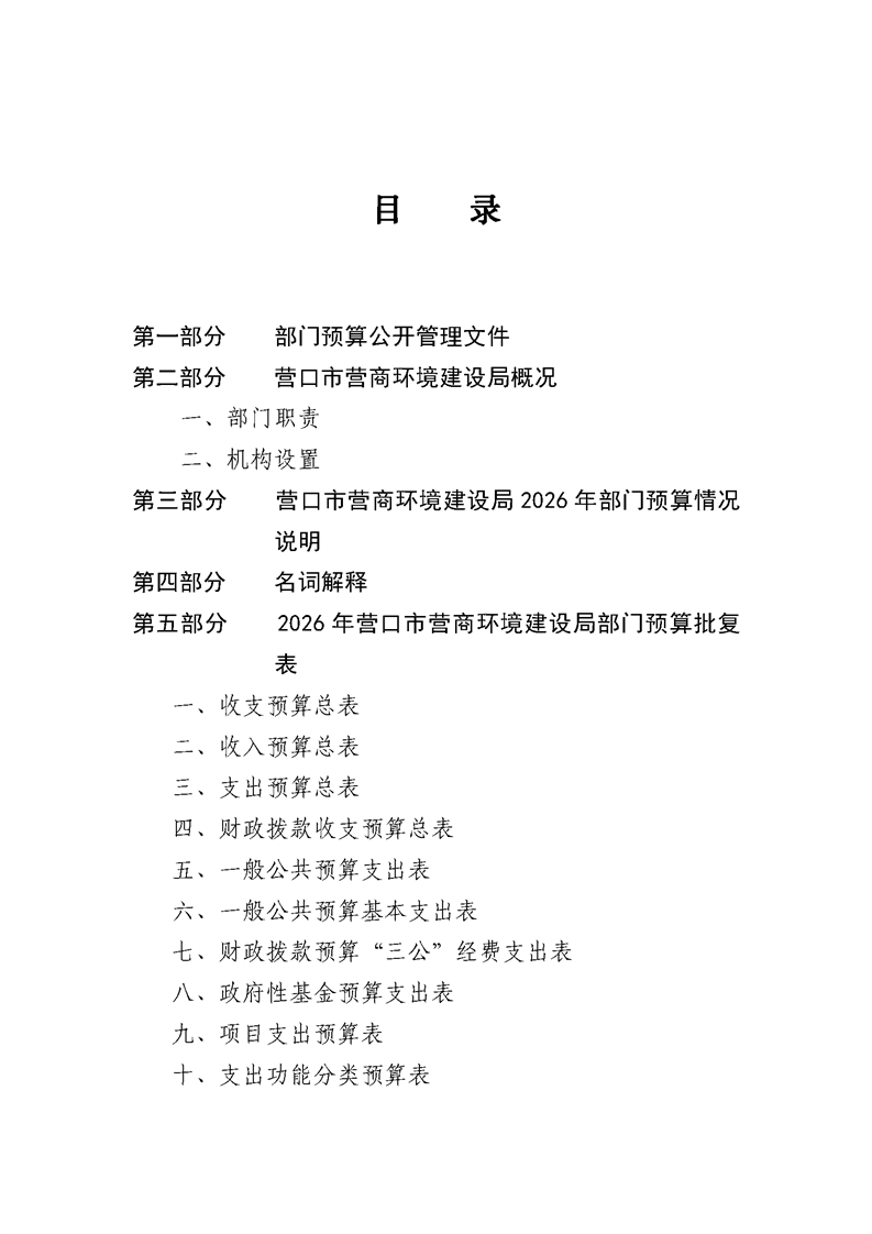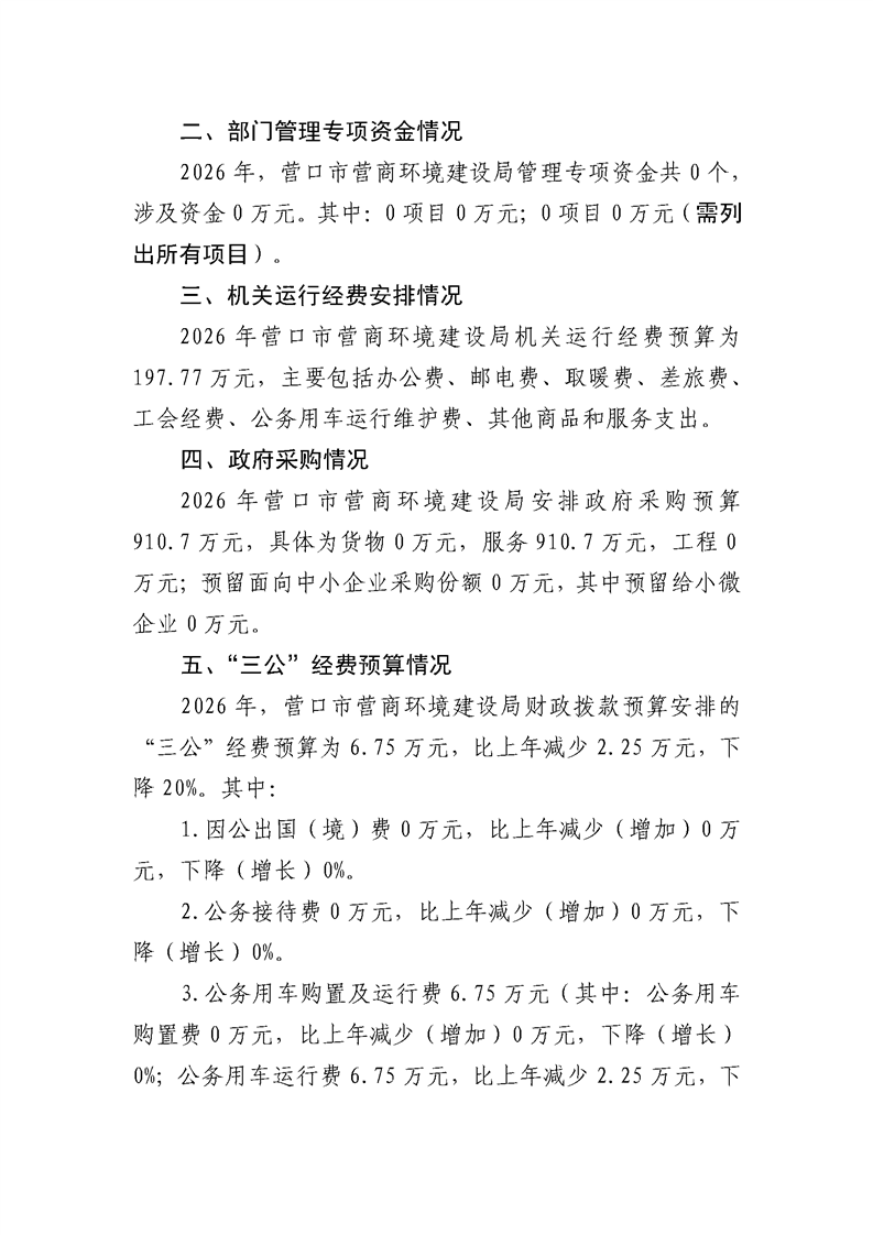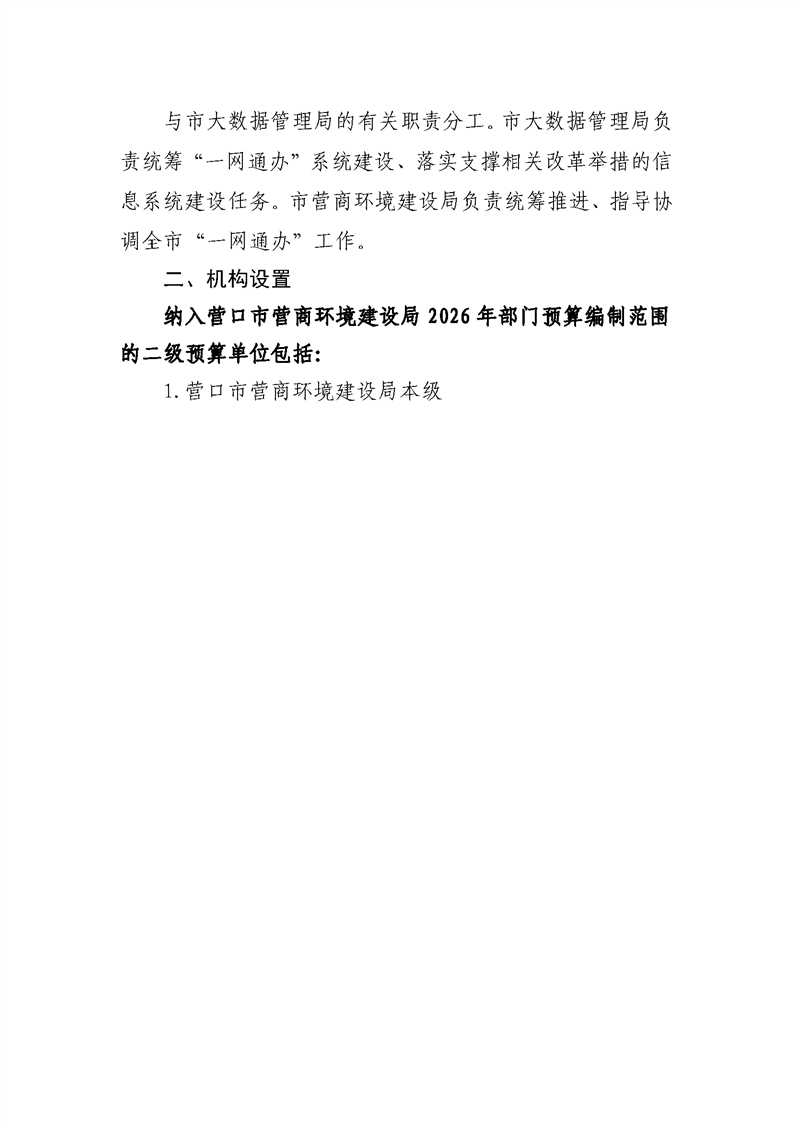 营口市营商环境建设局本级2026年度单位预算公开