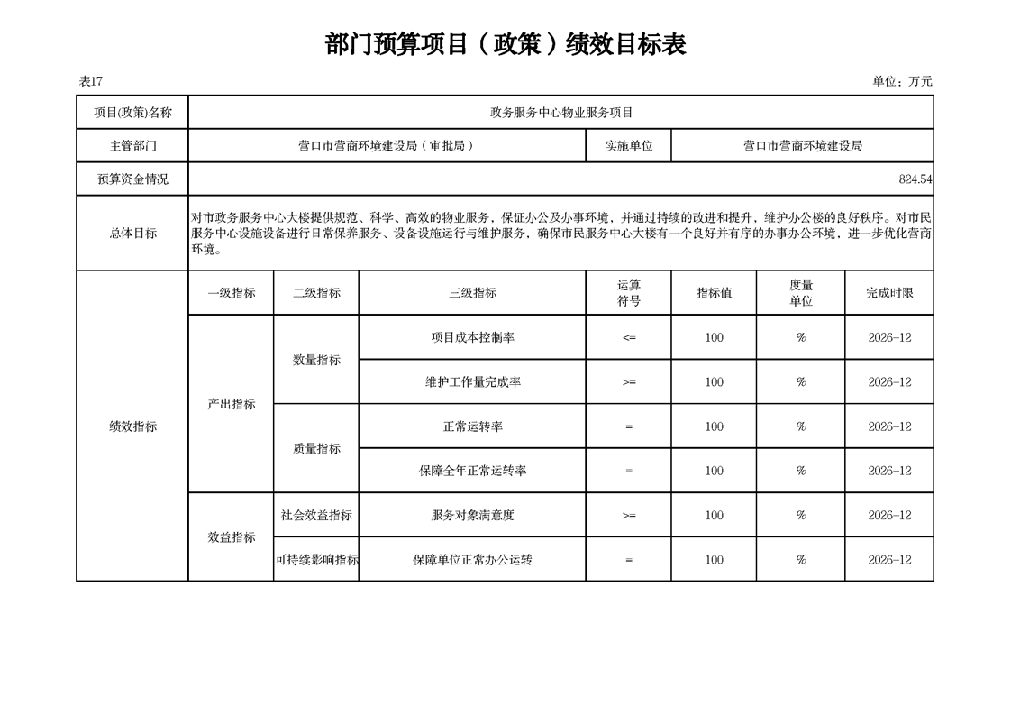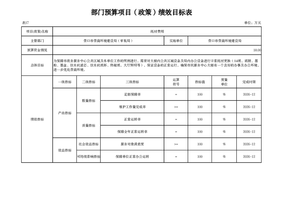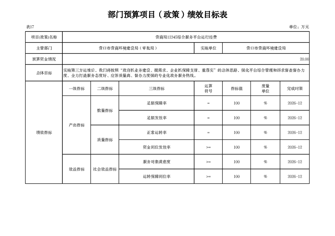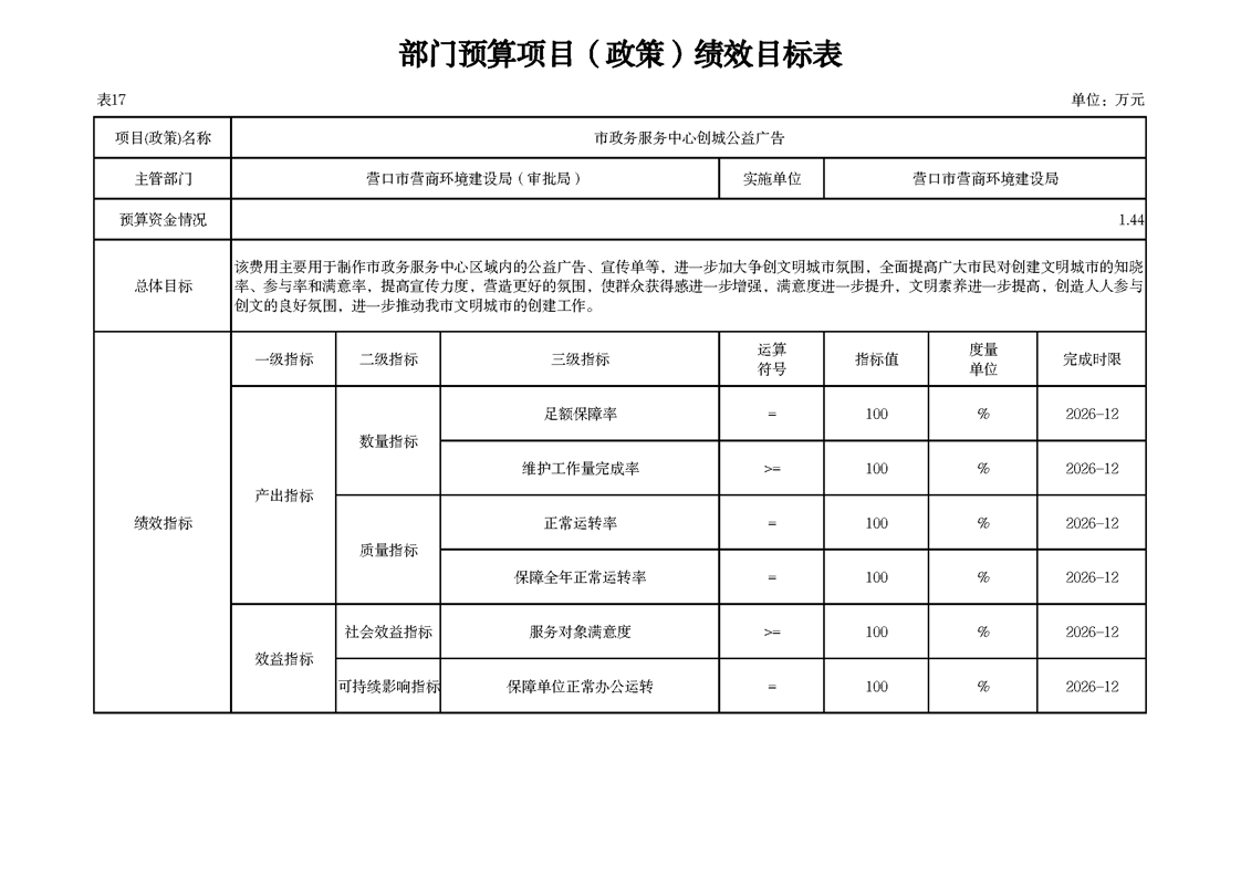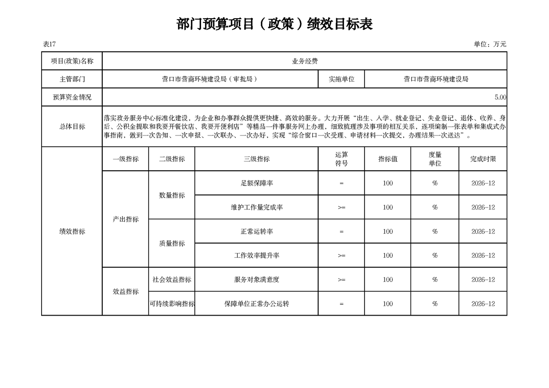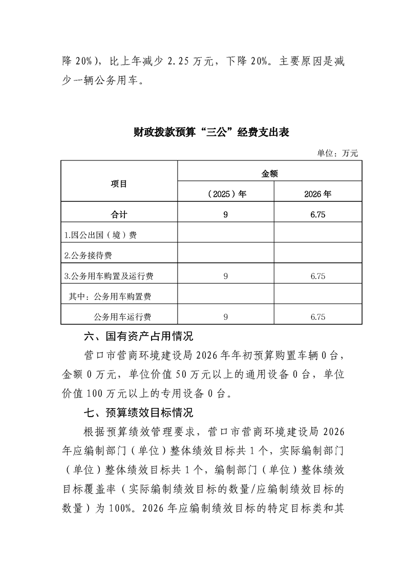 营口市营商环境建设局本级2026年度单位预算公开