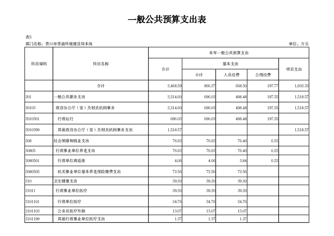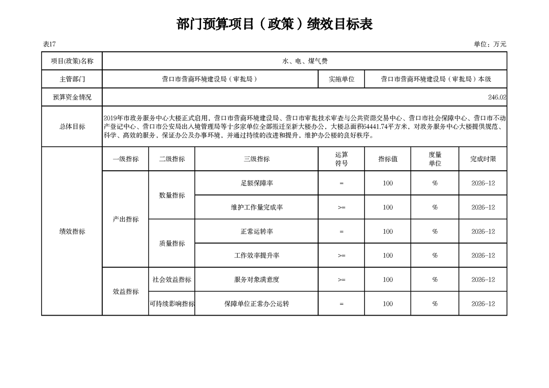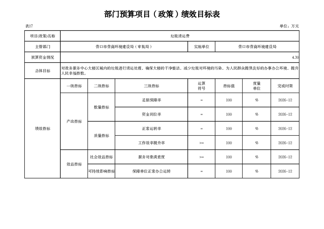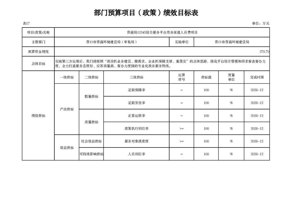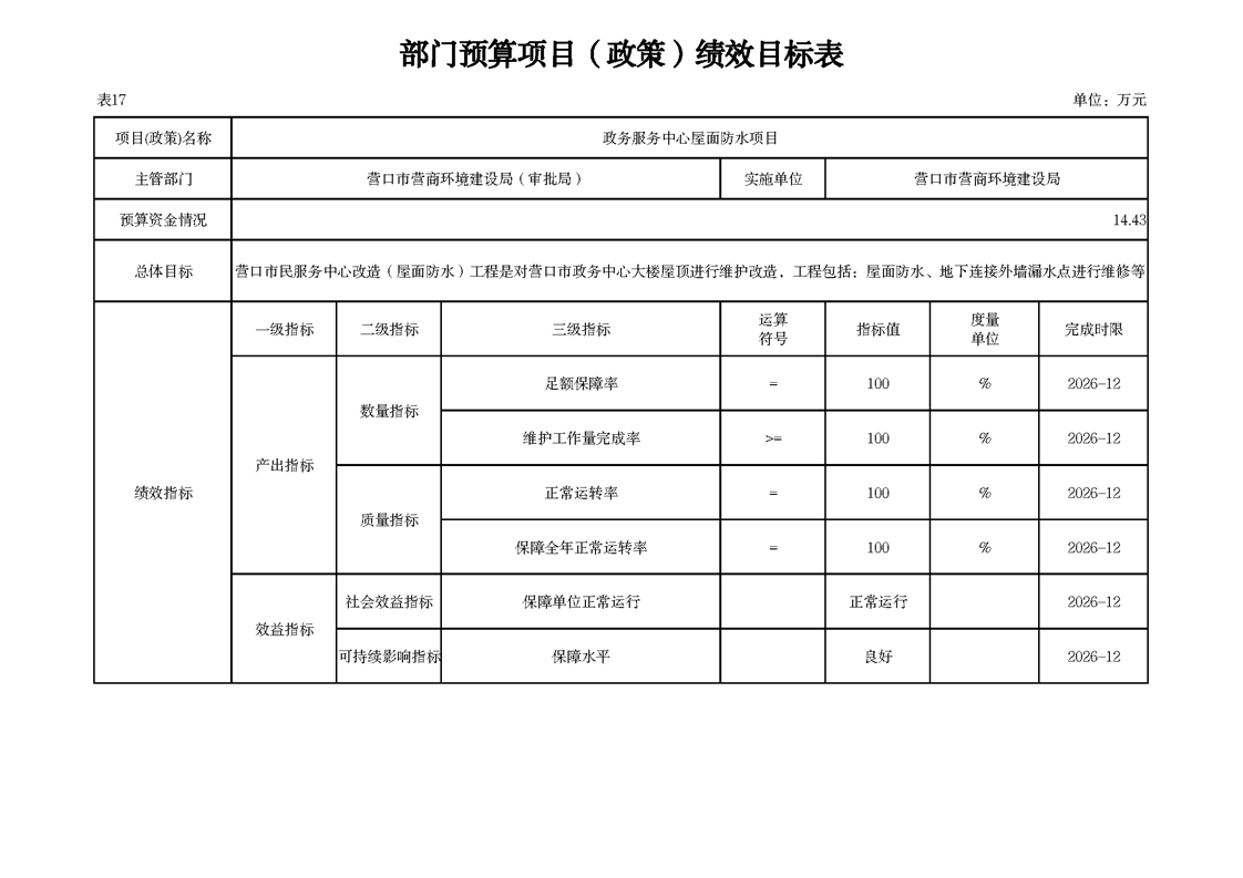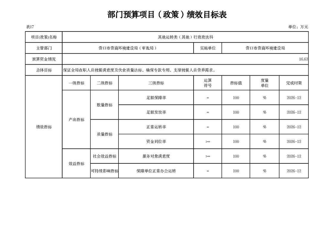 营口市营商环境建设局本级2026年度单位预算公开