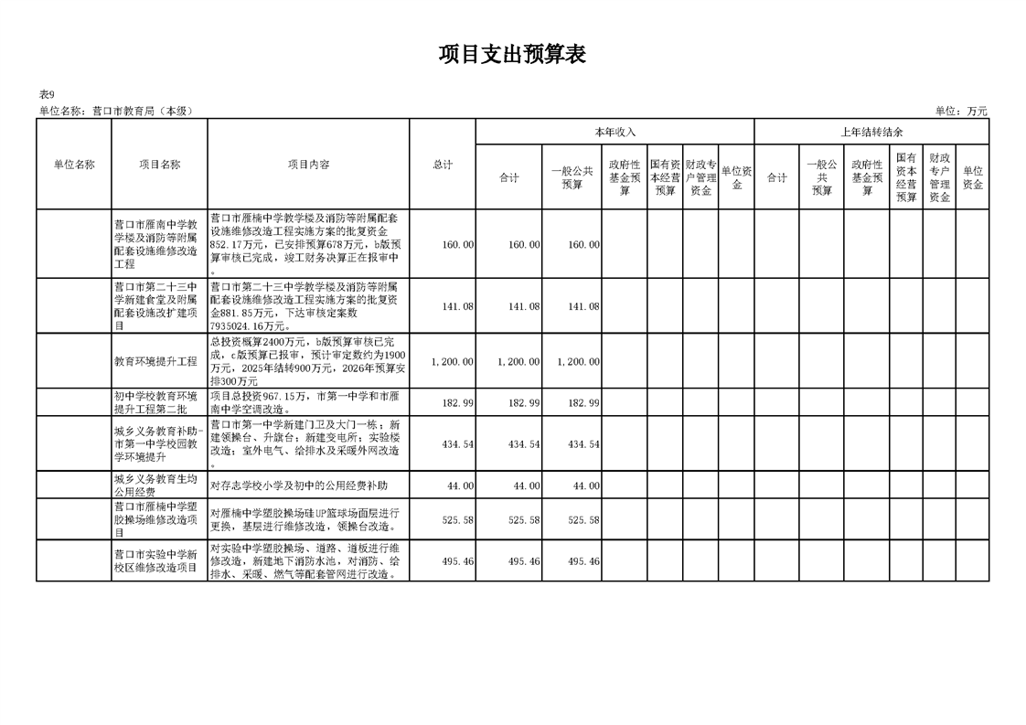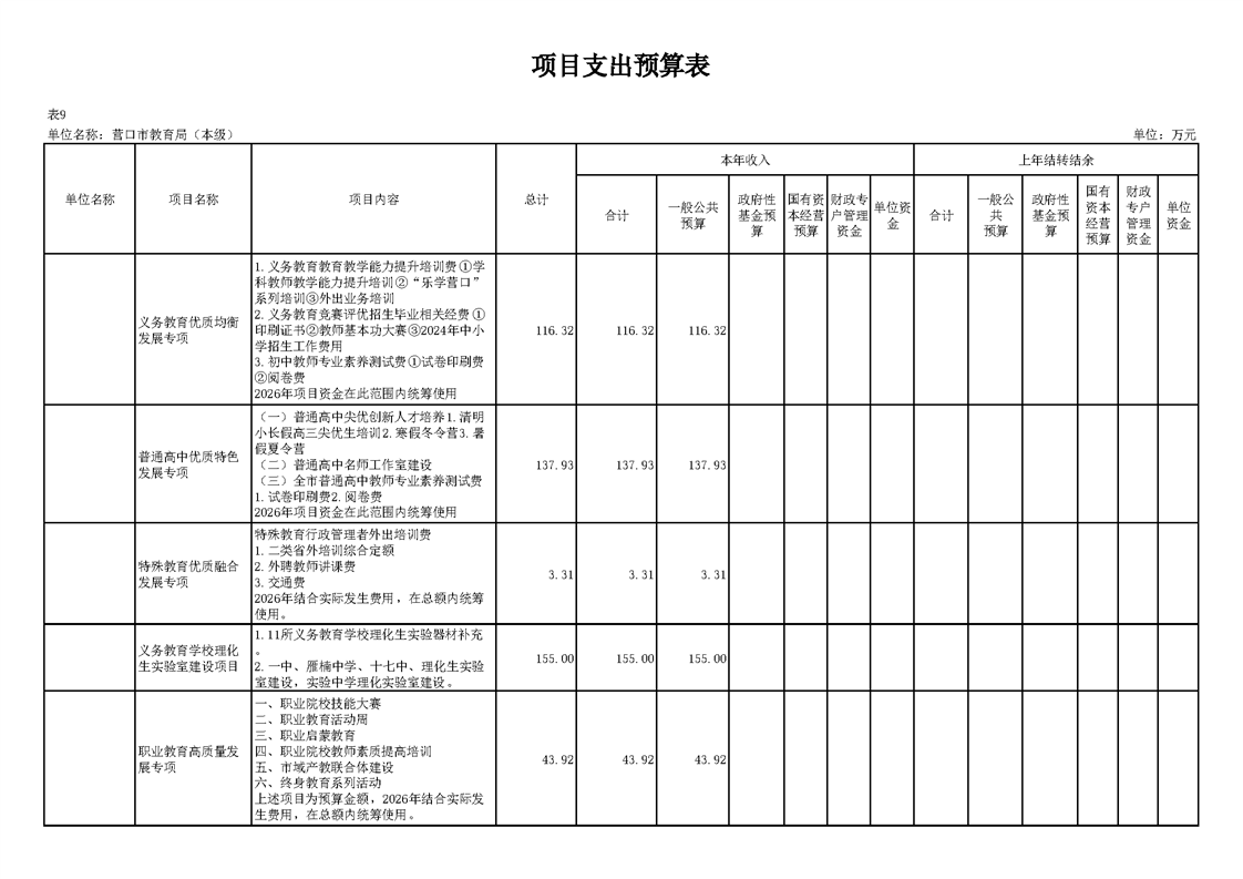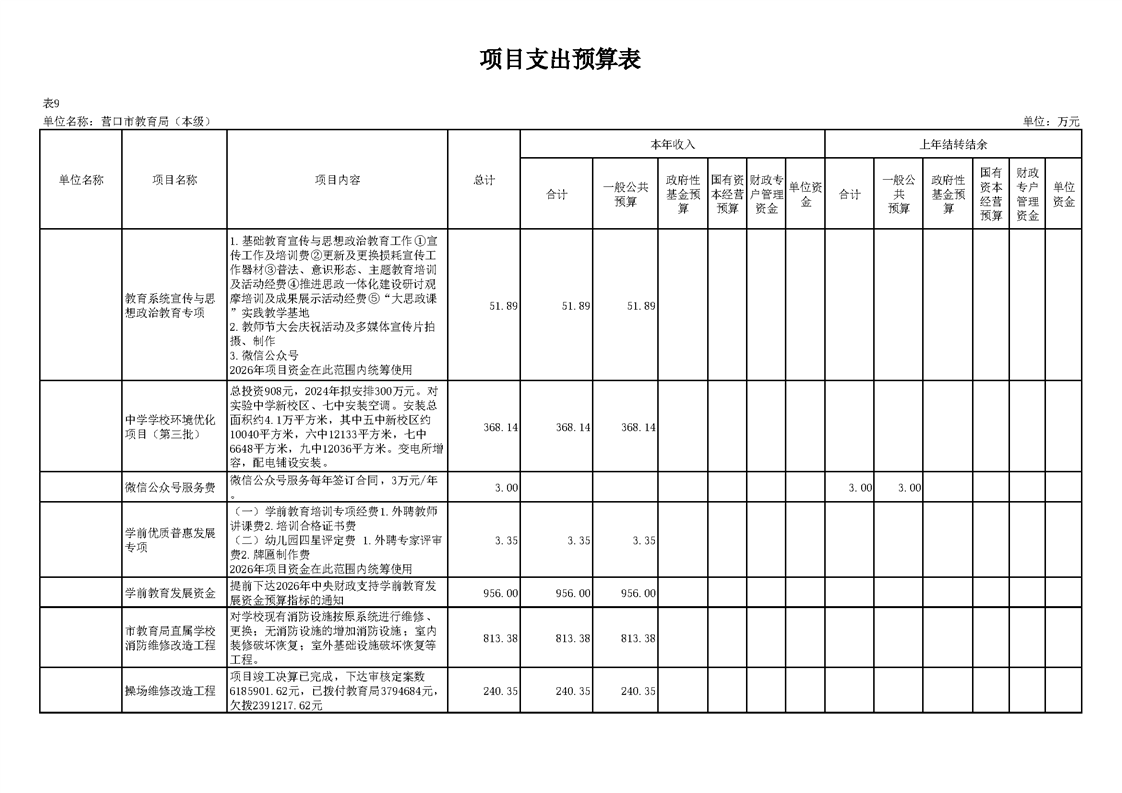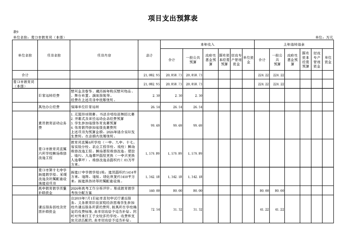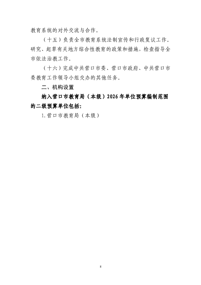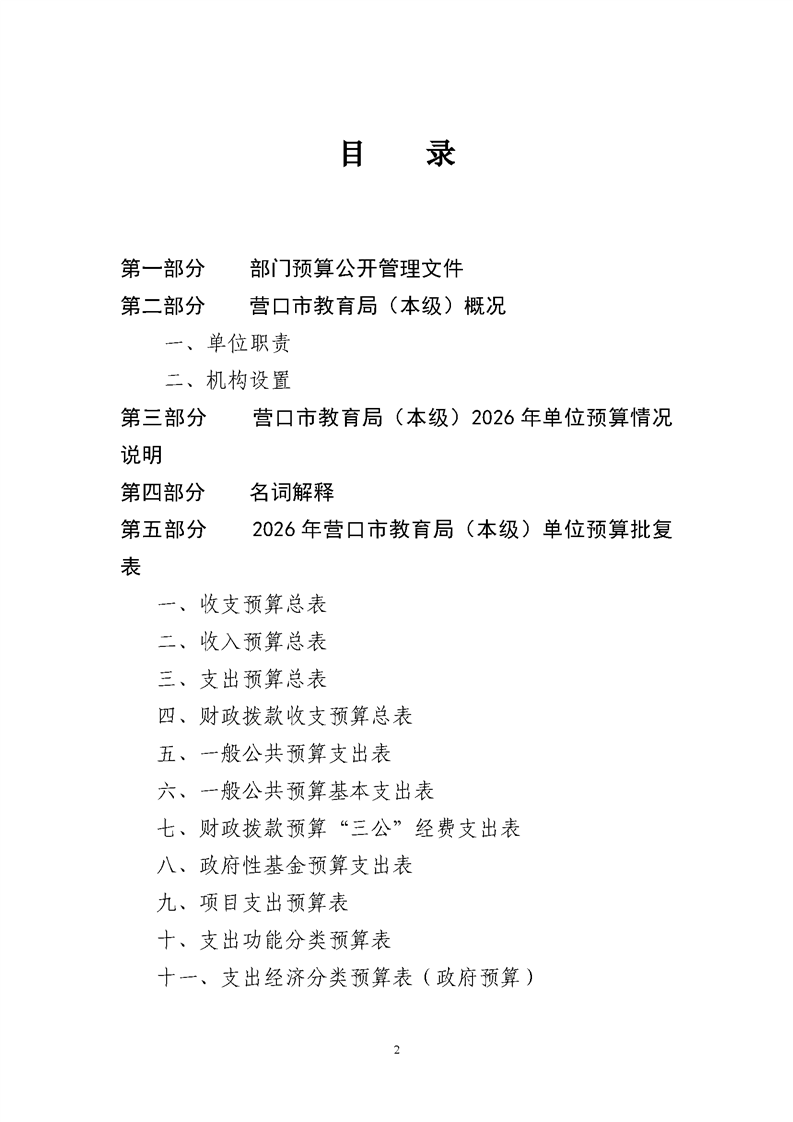营口市教育局本级2026年度单位预算公开