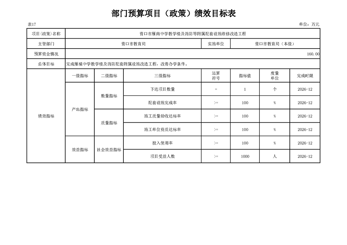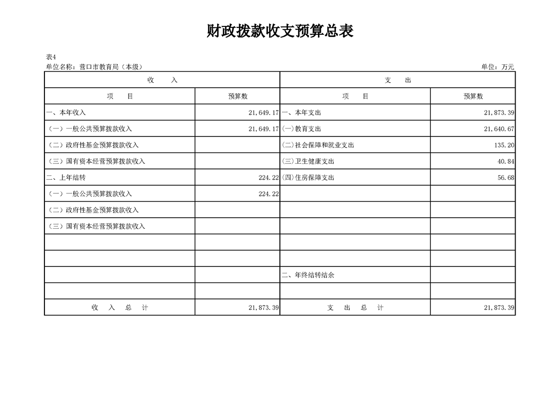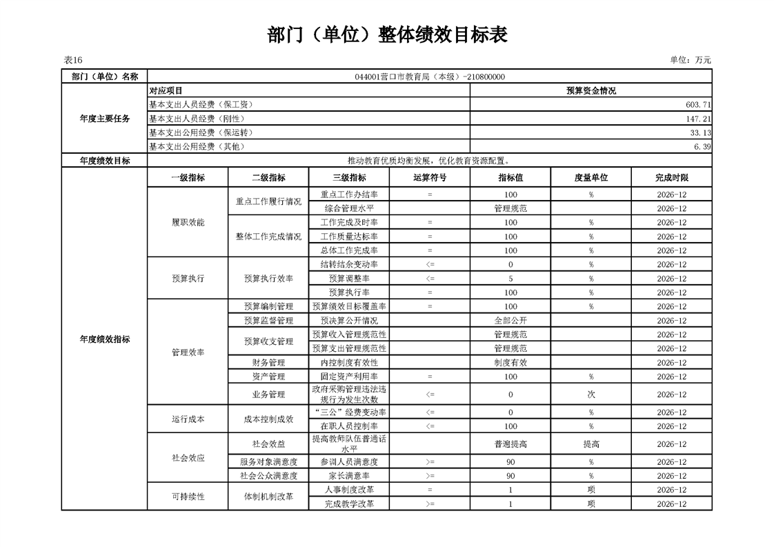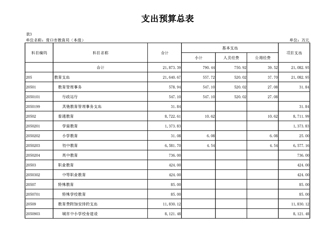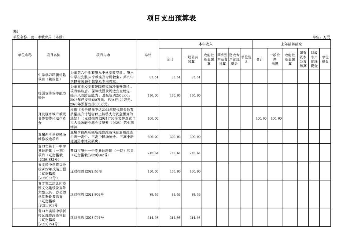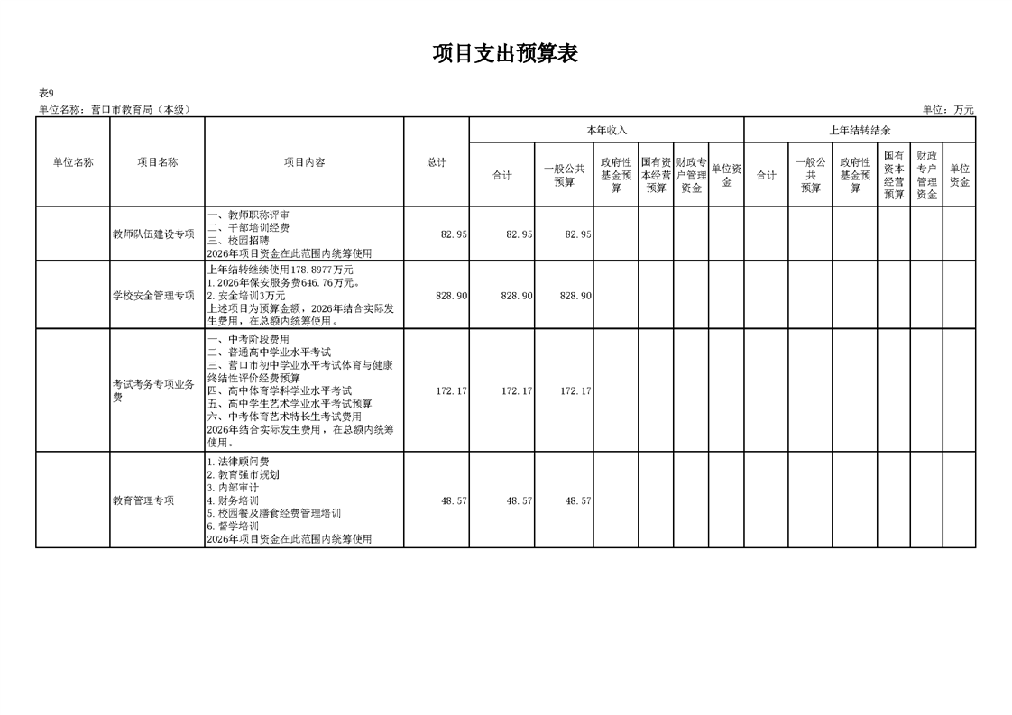 营口市教育局本级2026年度单位预算公开