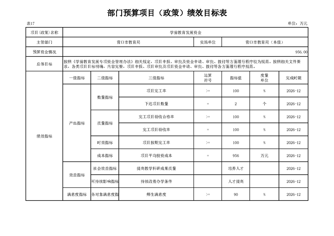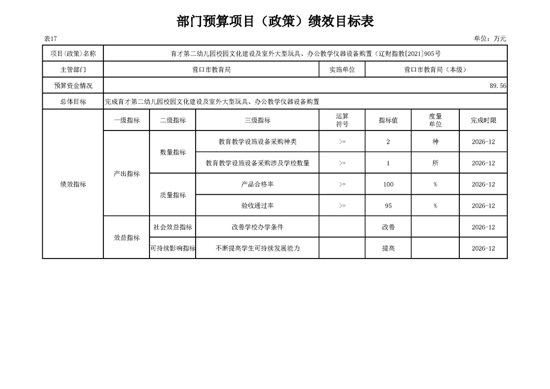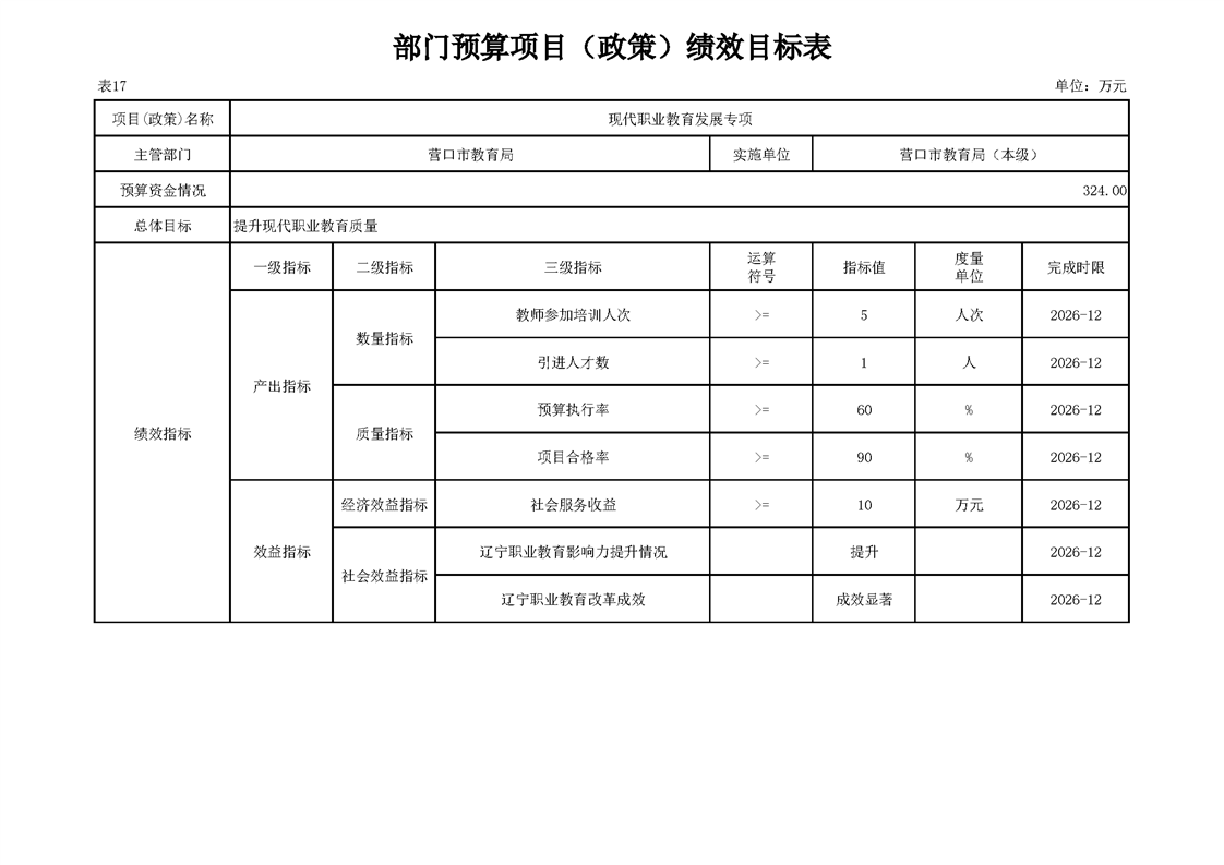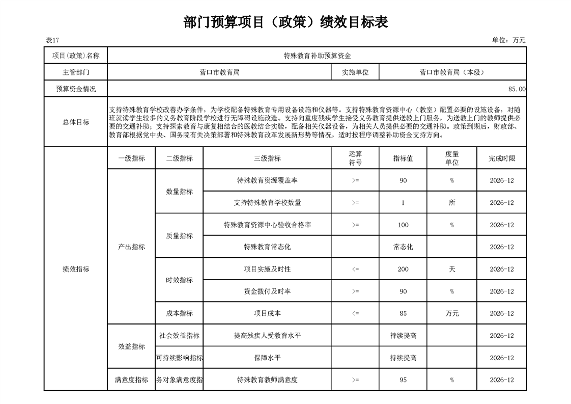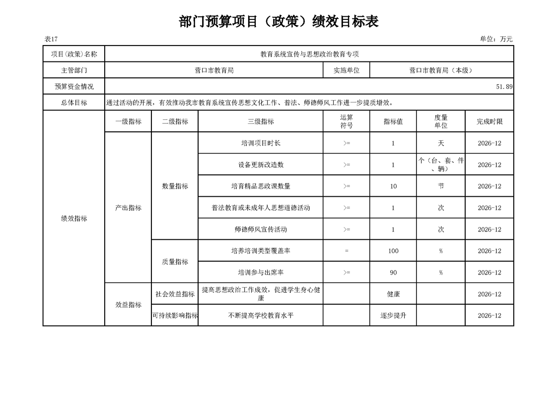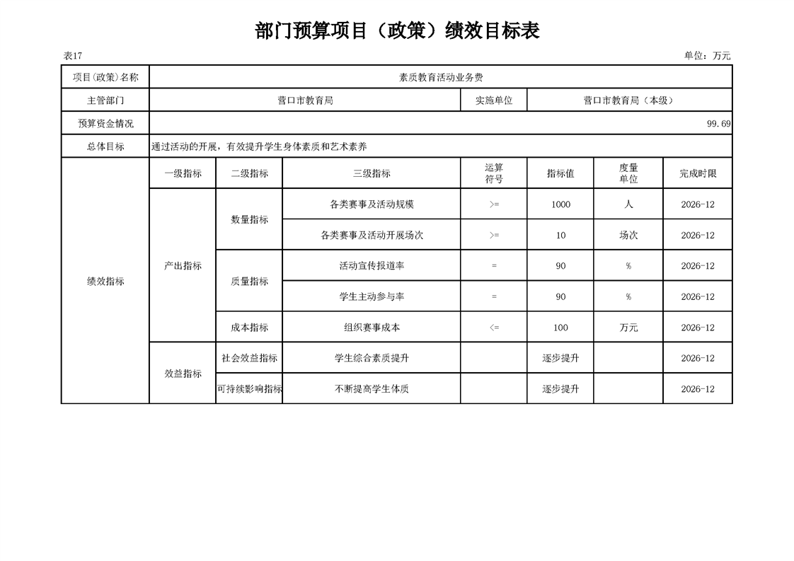 营口市教育局本级2026年度单位预算公开