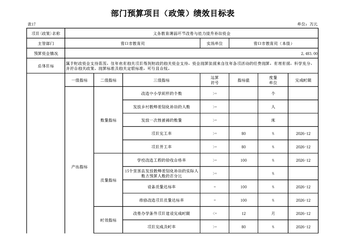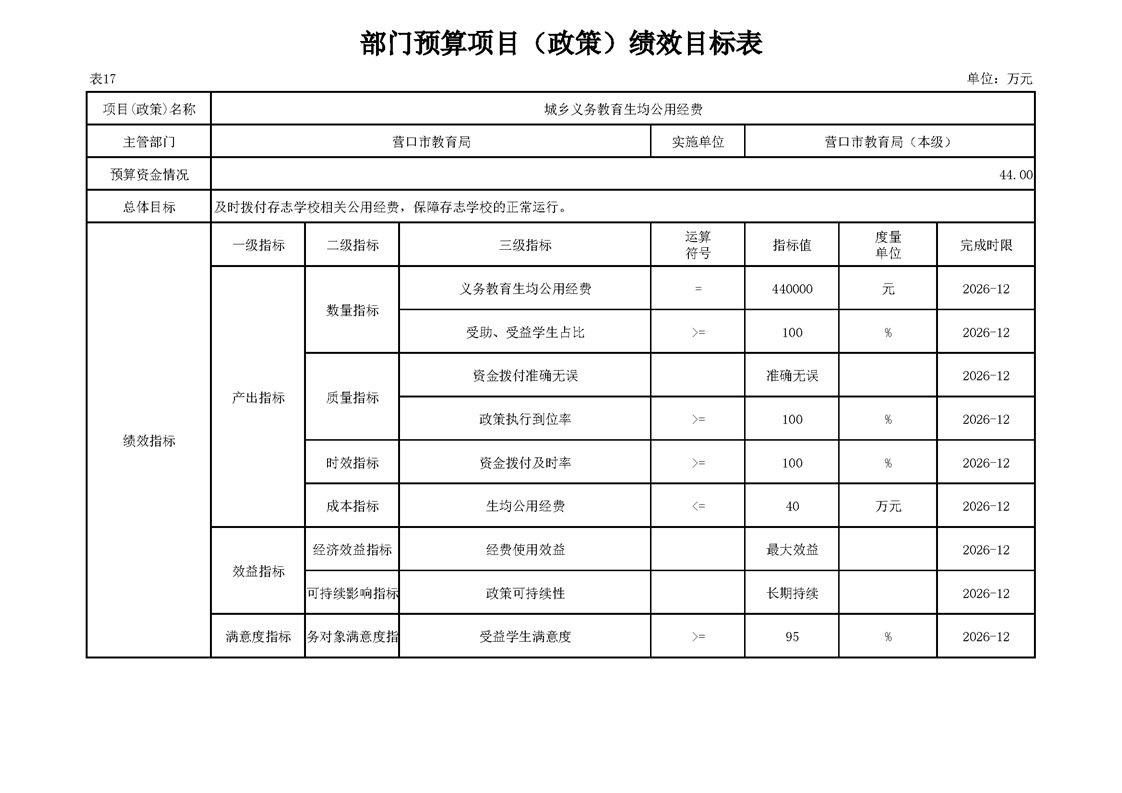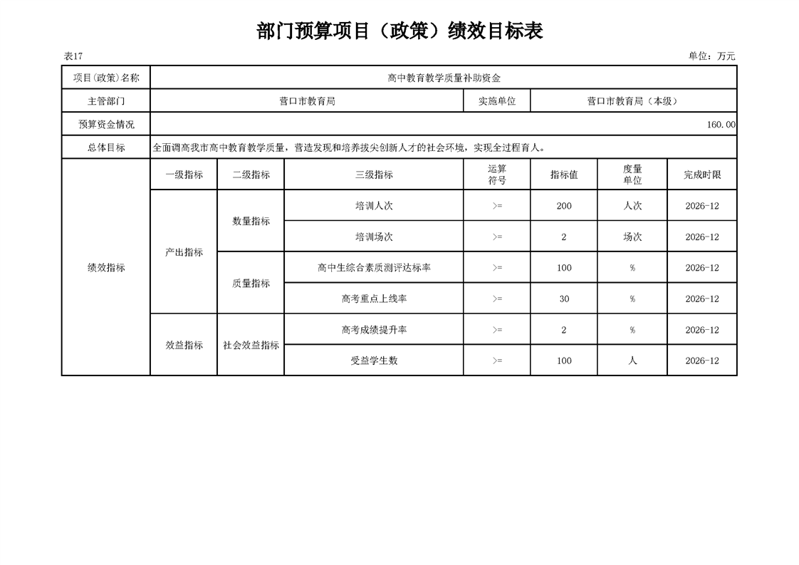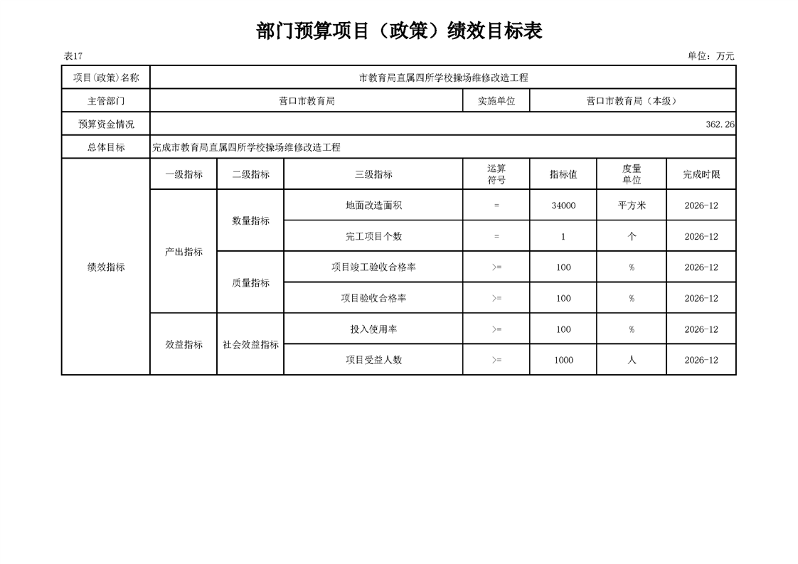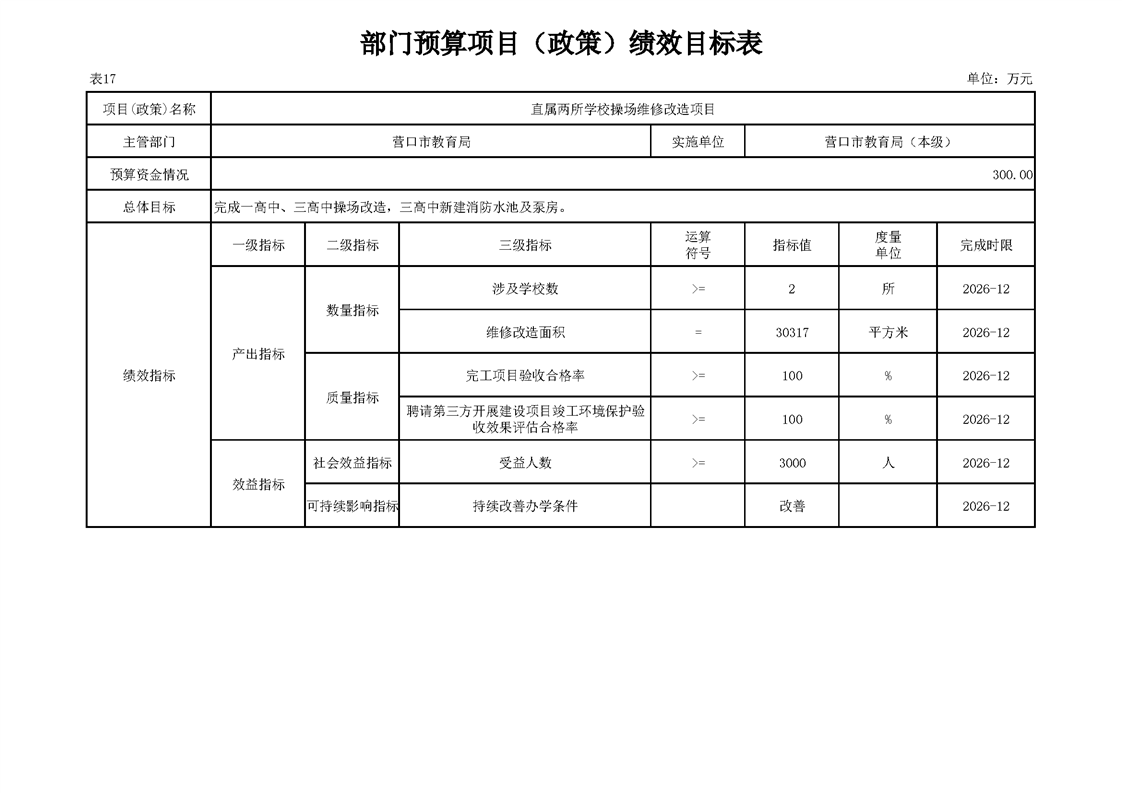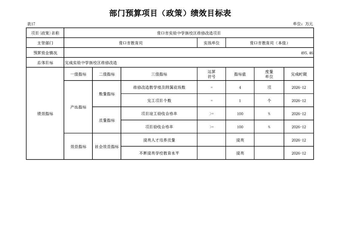 营口市教育局本级2026年度单位预算公开