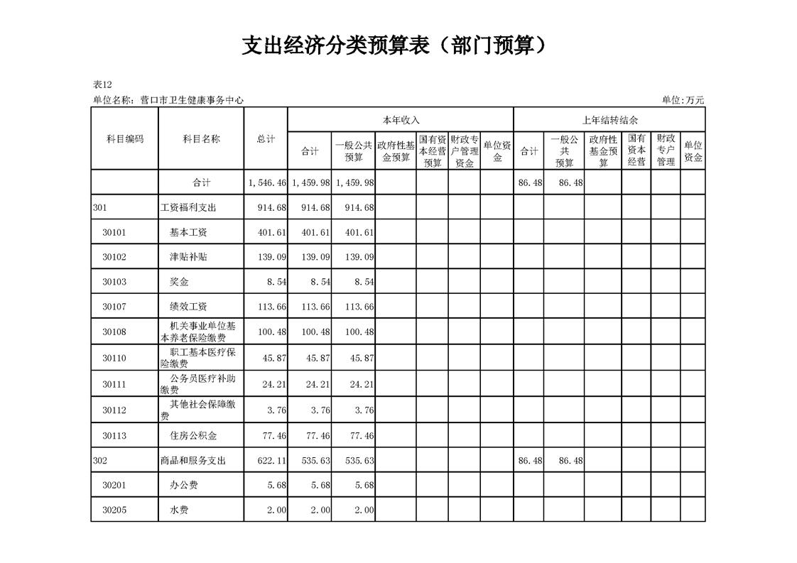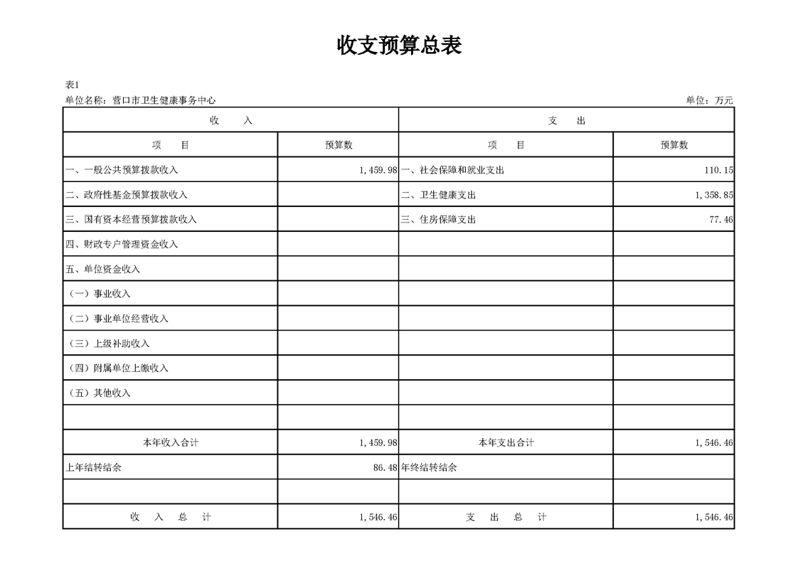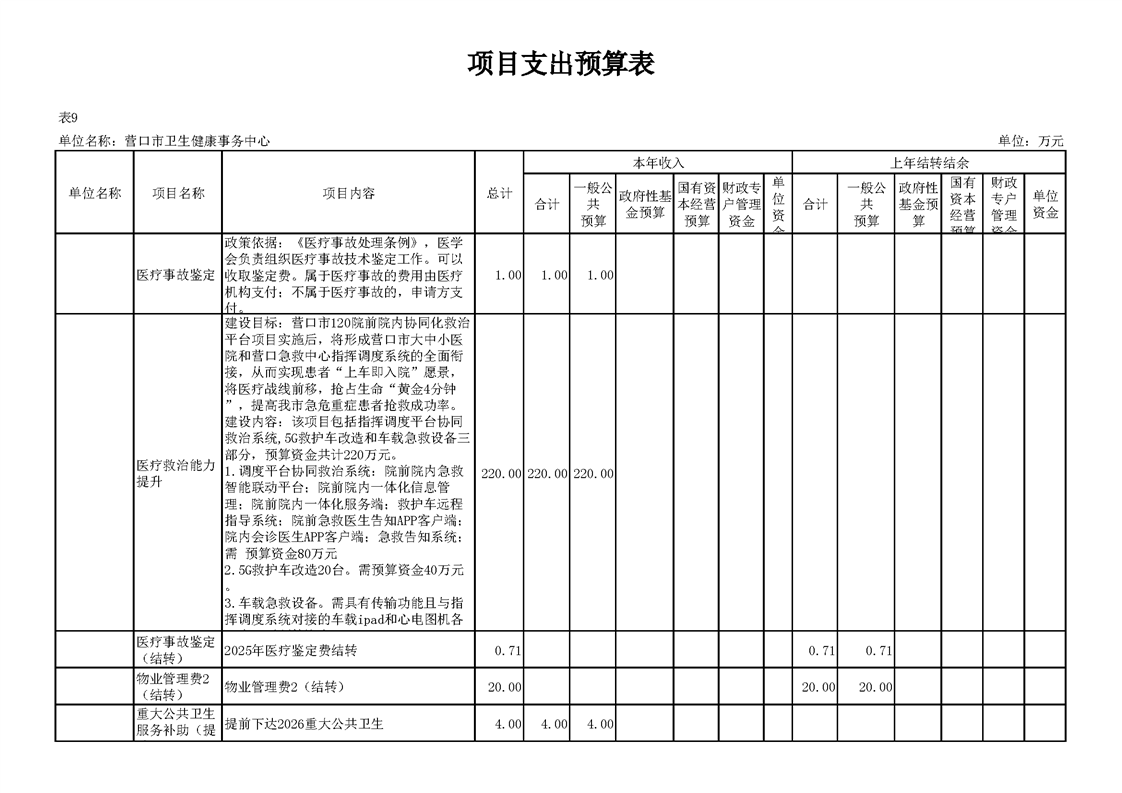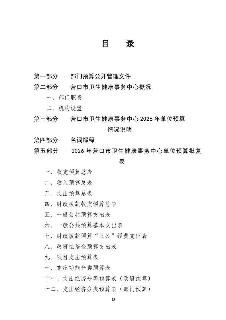 营口市卫生健康事务中心2026年度单位预算公开