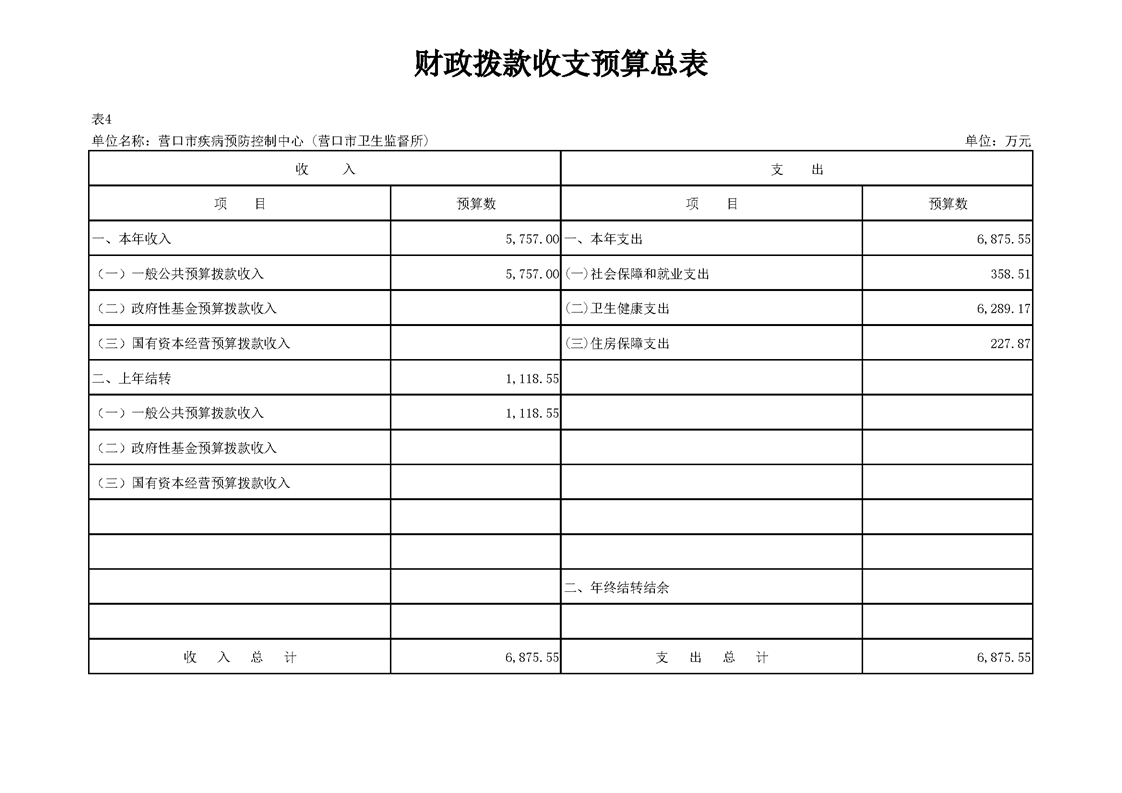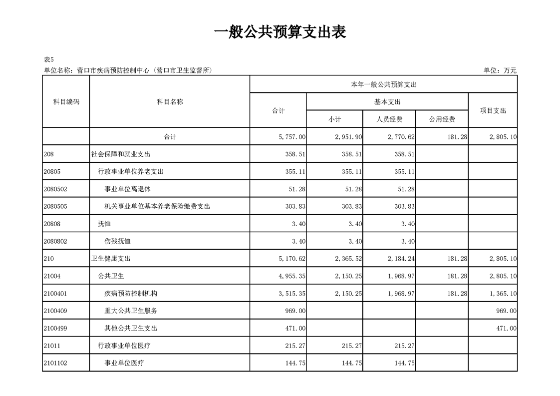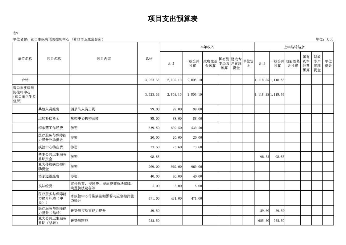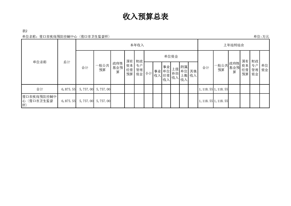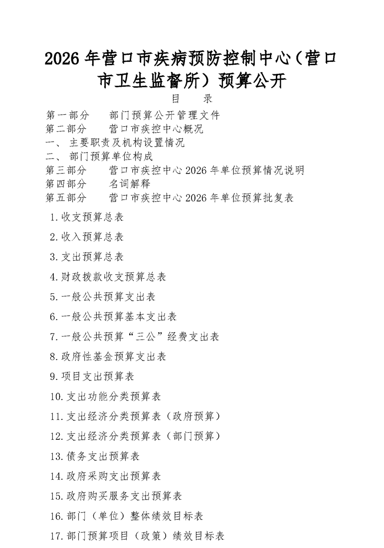 营口市疾病预防控制中心2026年度预算公开