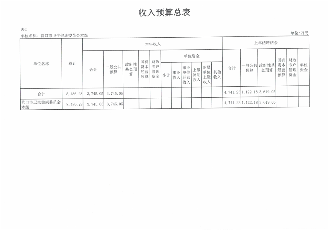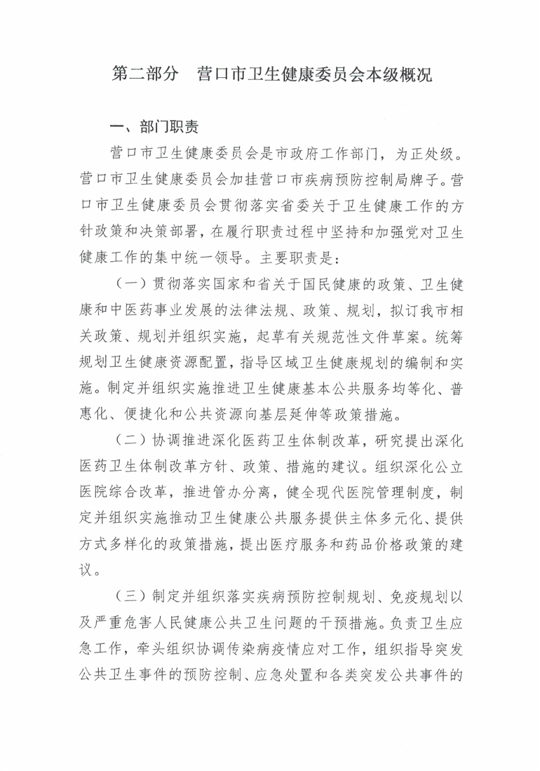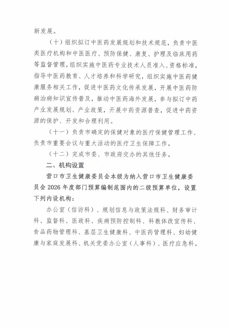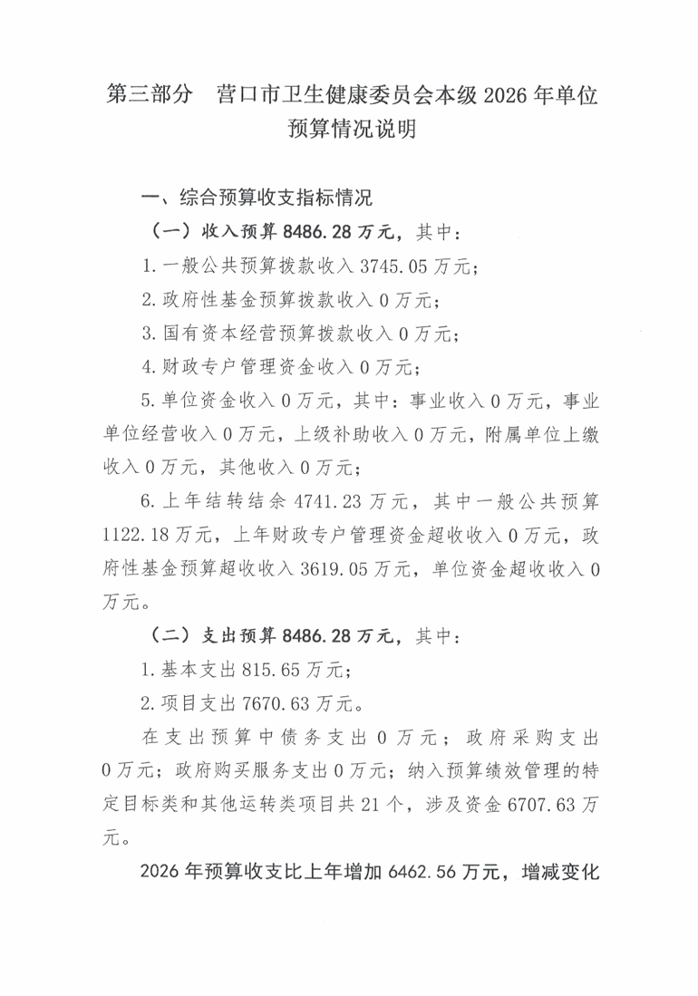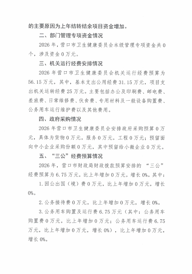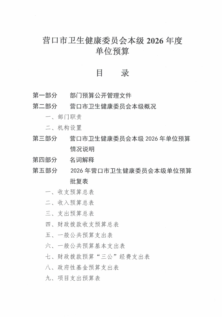 营口市卫生健康委员会本级2026年度单位预算