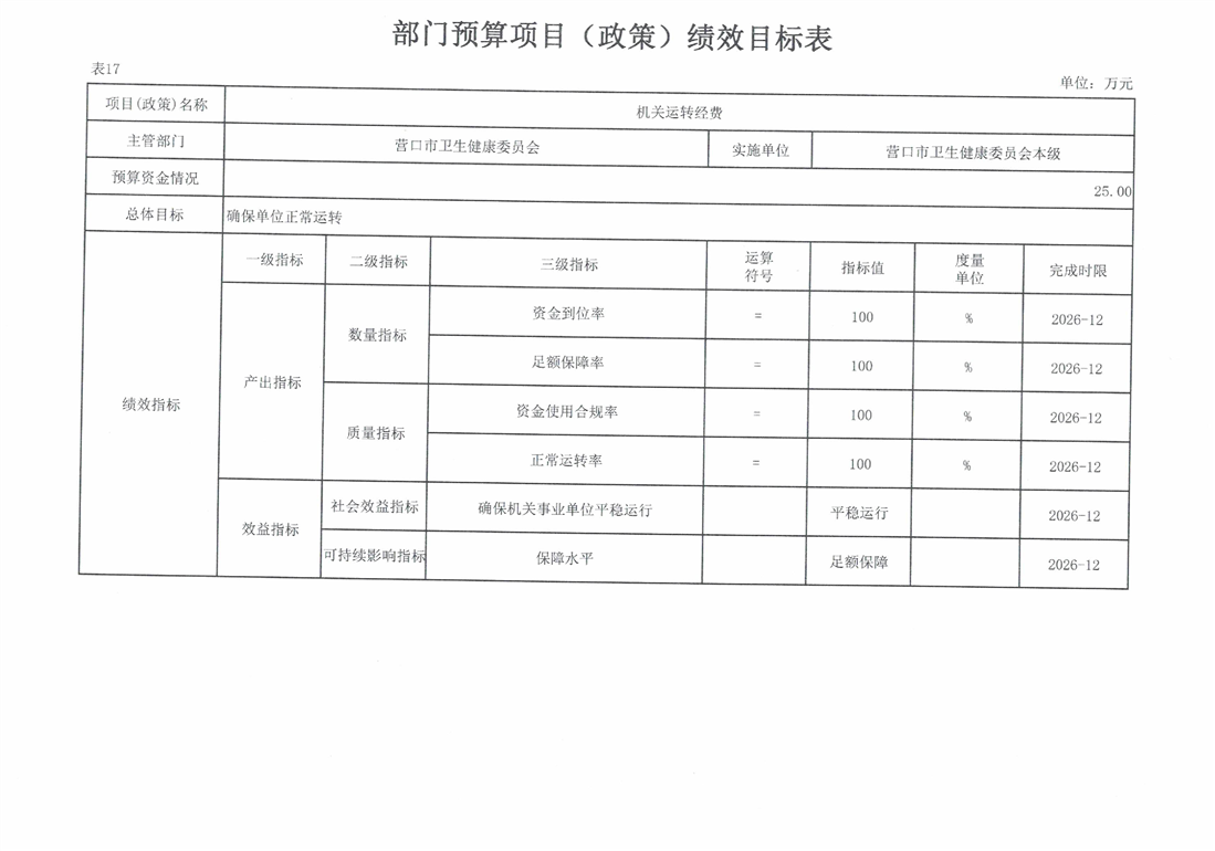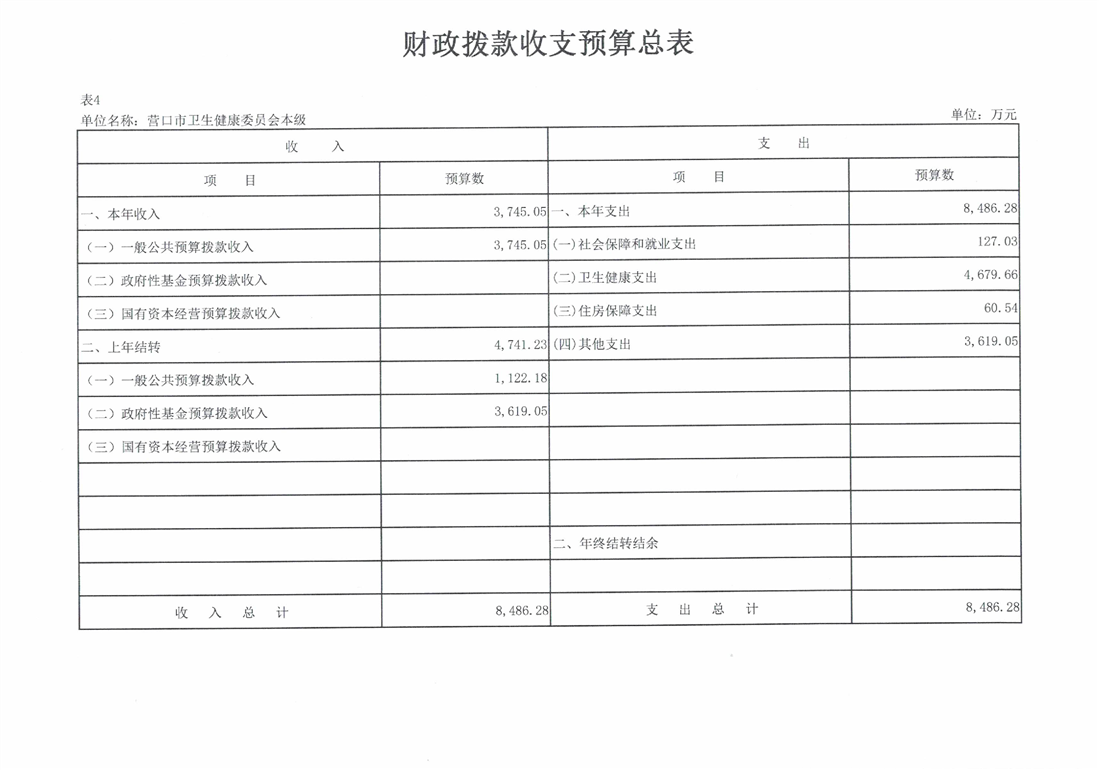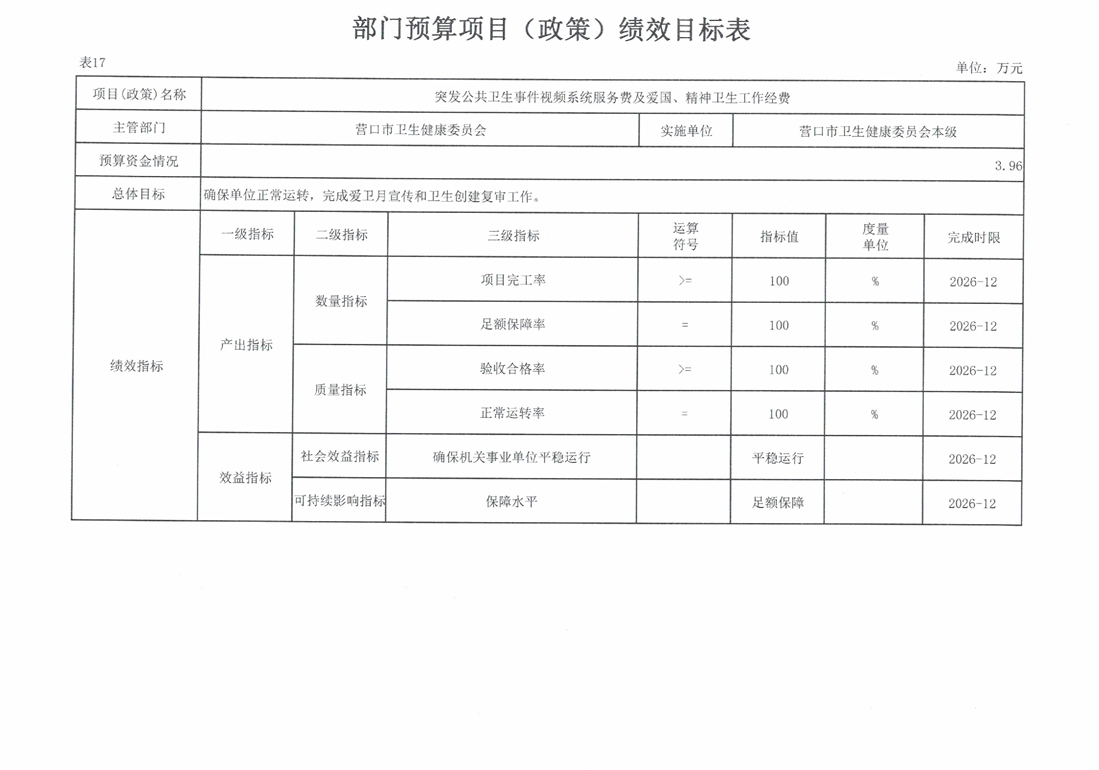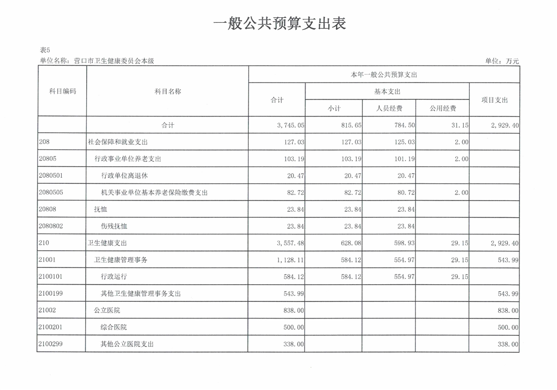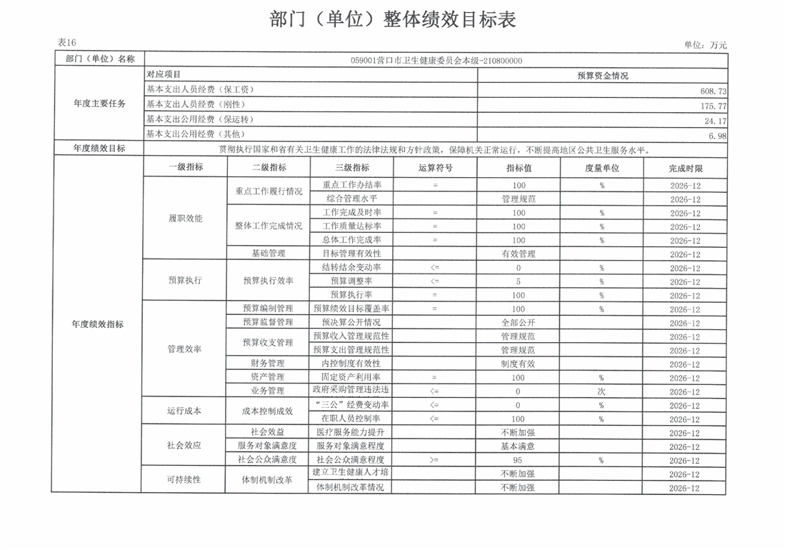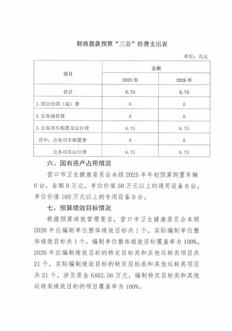 营口市卫生健康委员会本级2026年度单位预算