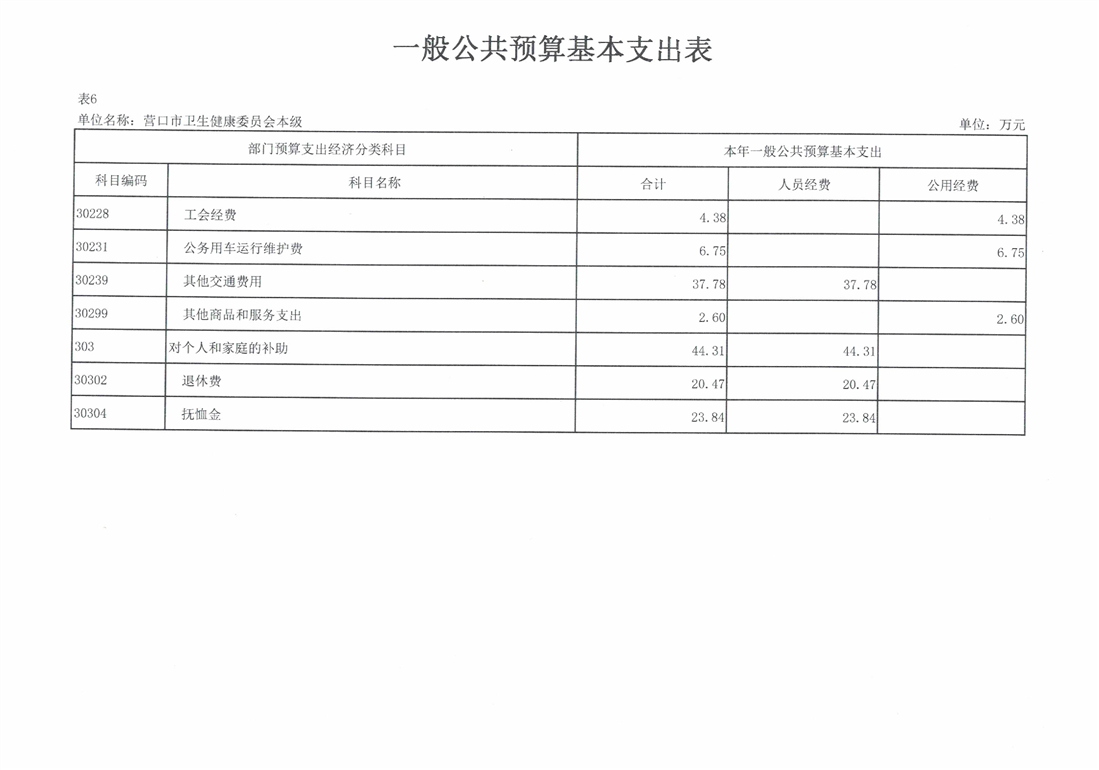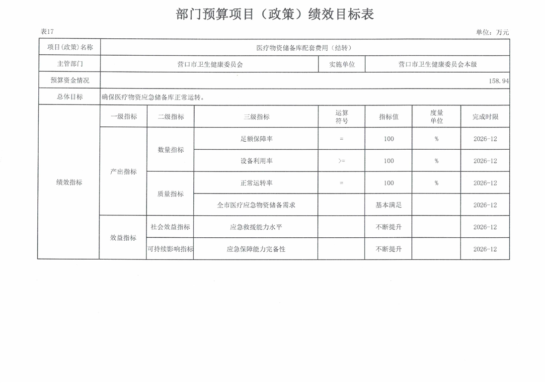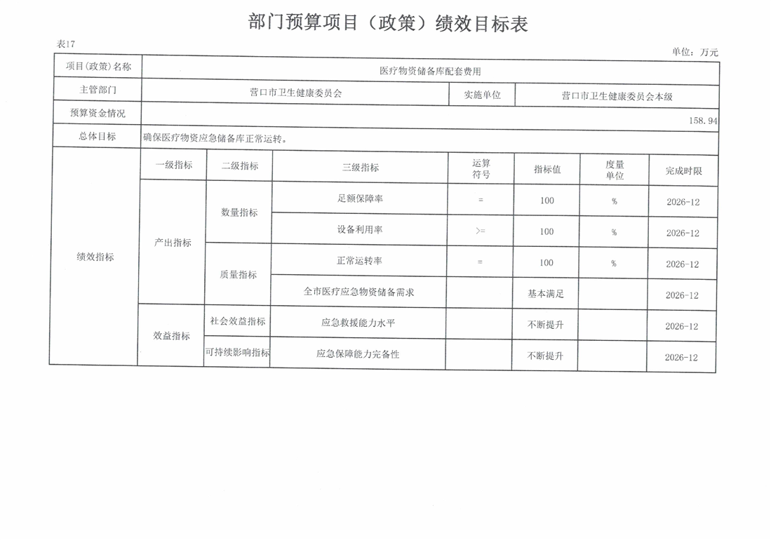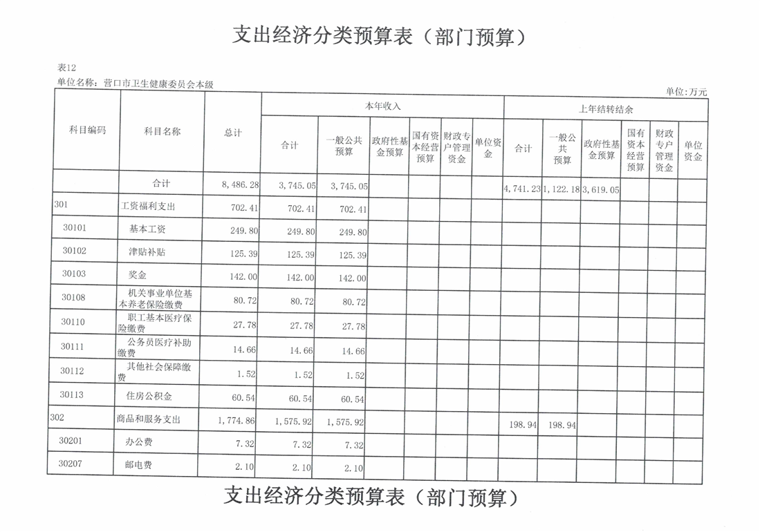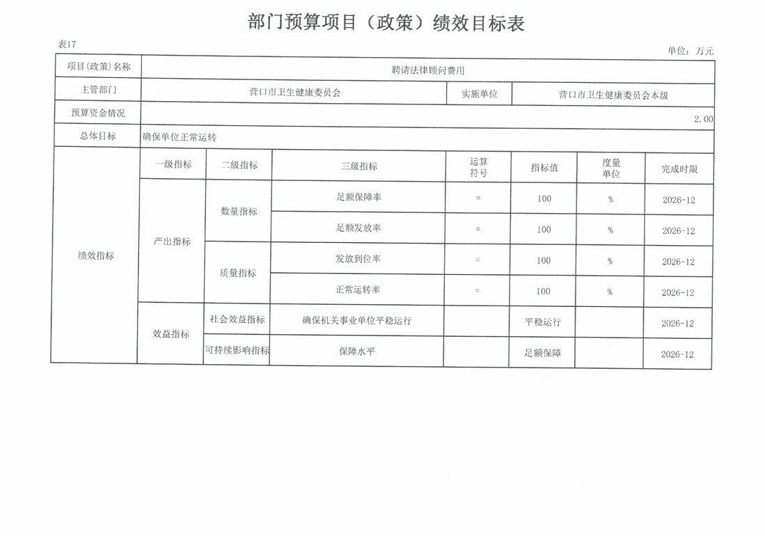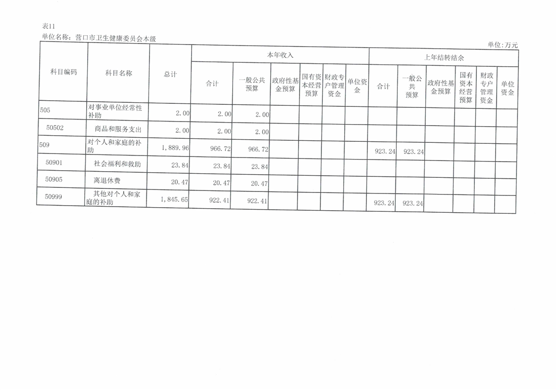 营口市卫生健康委员会本级2026年度单位预算