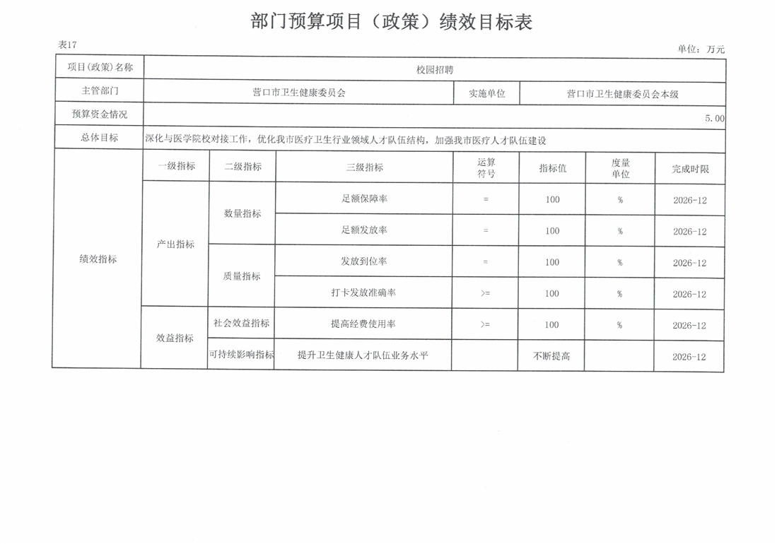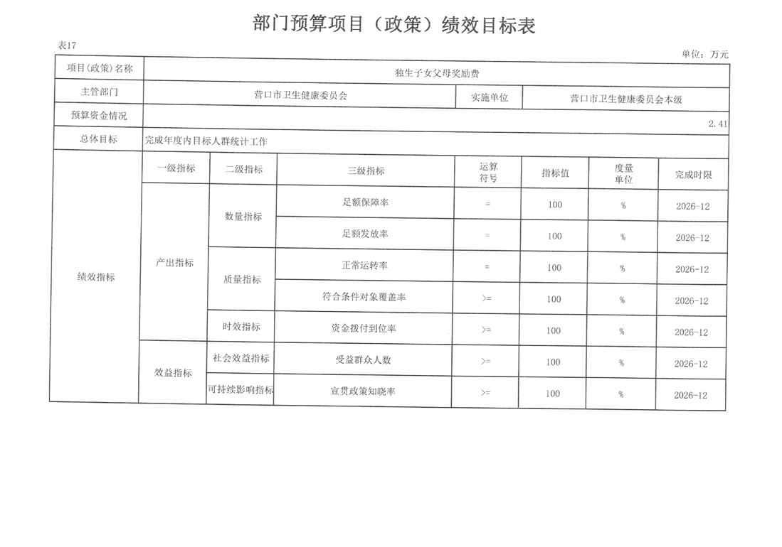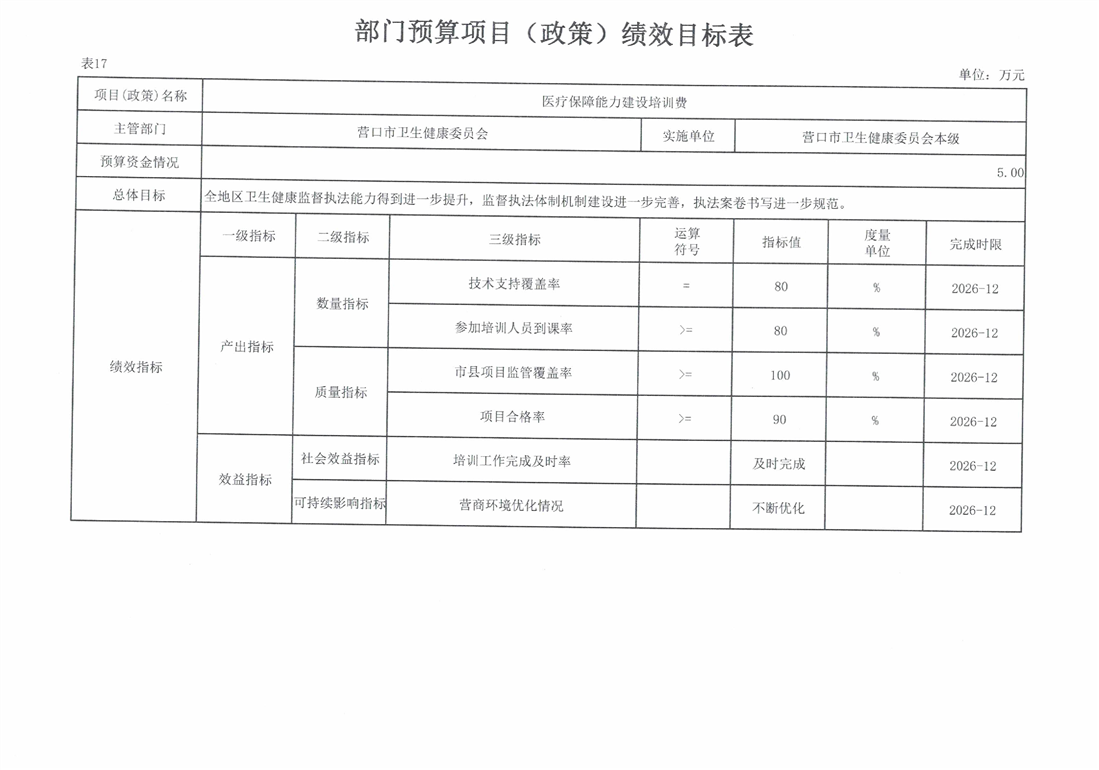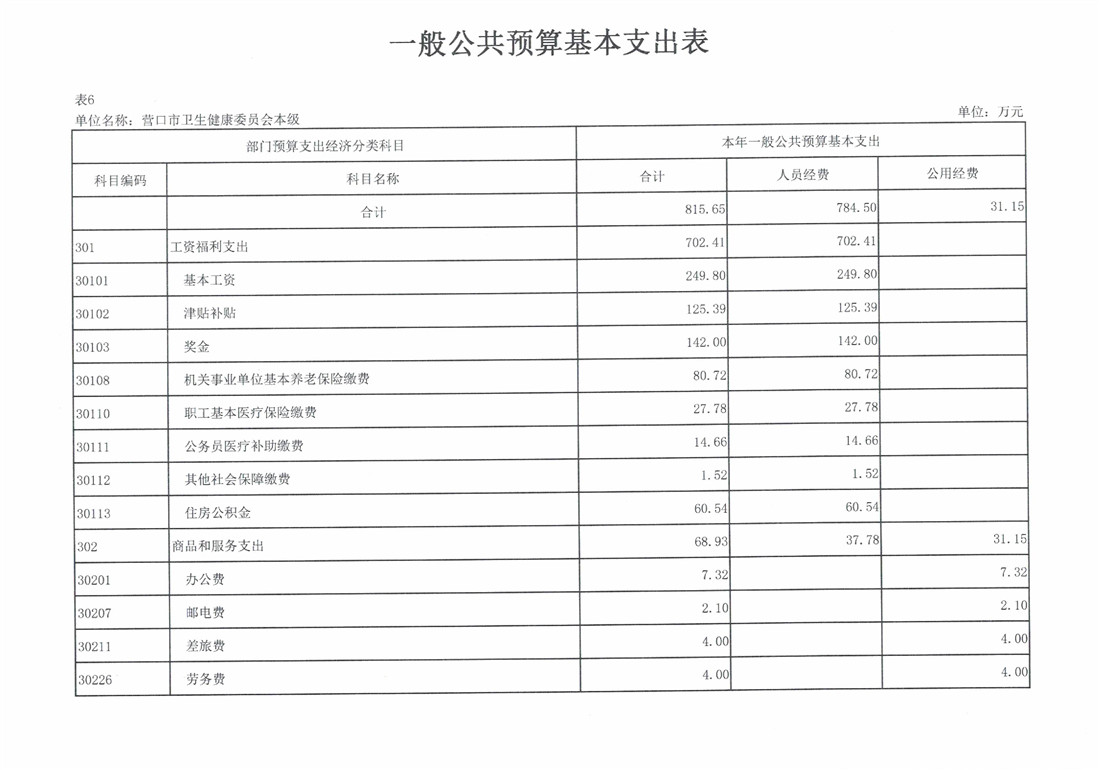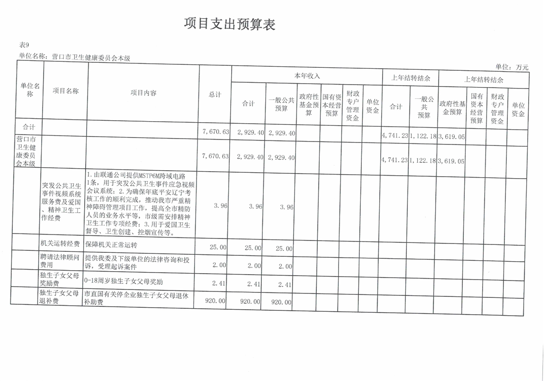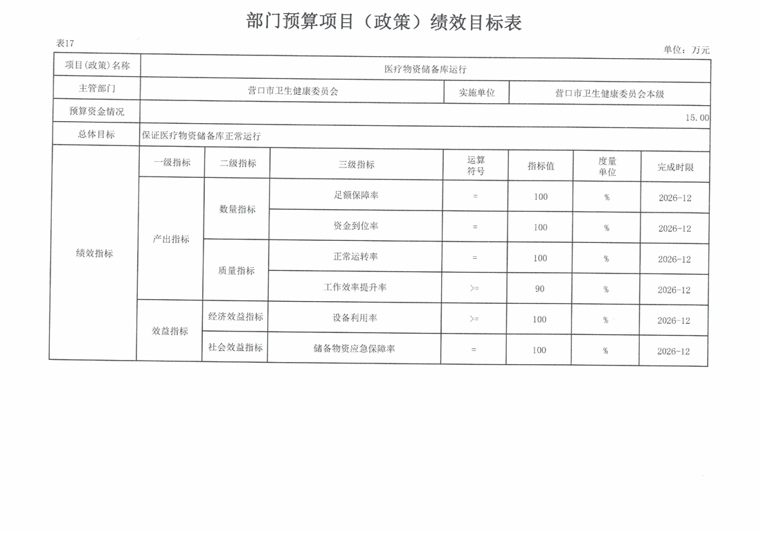 营口市卫生健康委员会本级2026年度单位预算