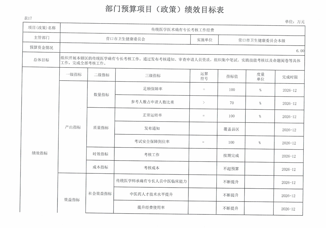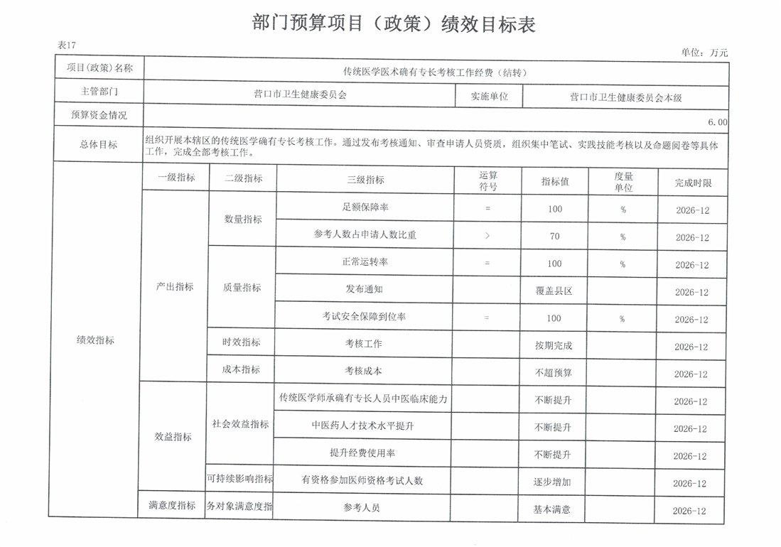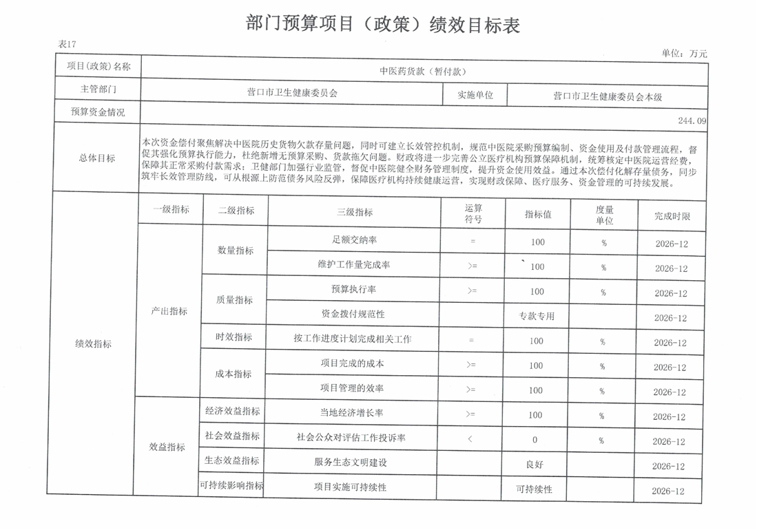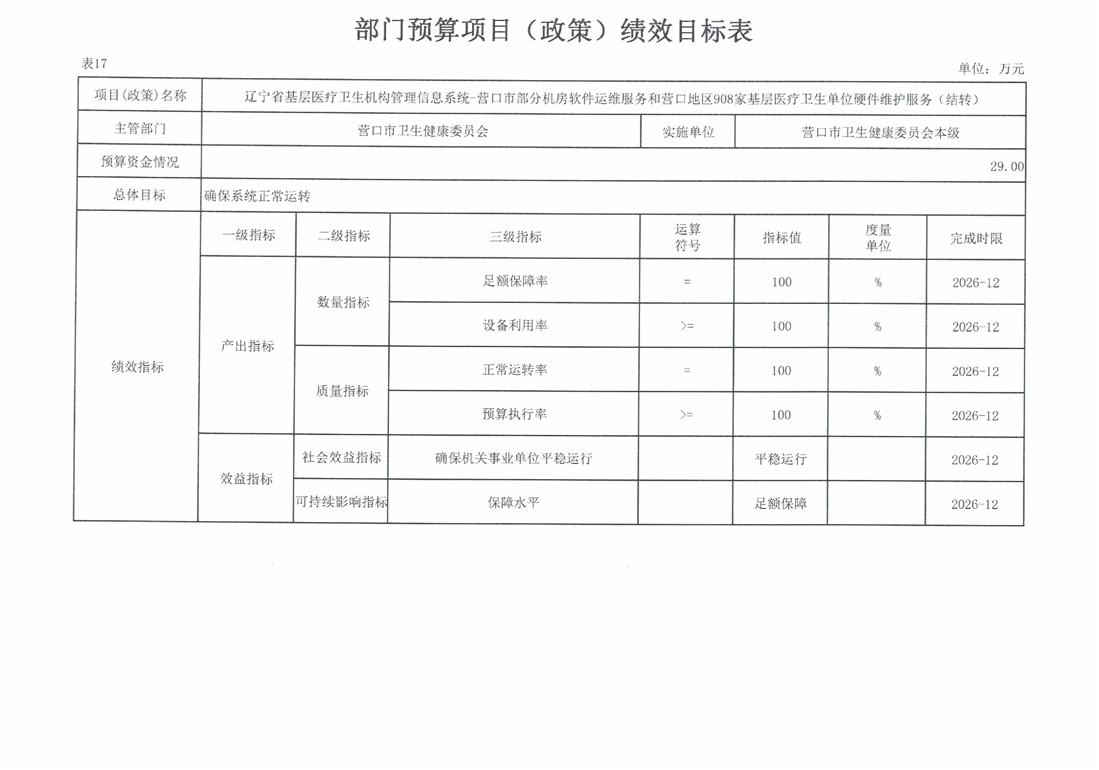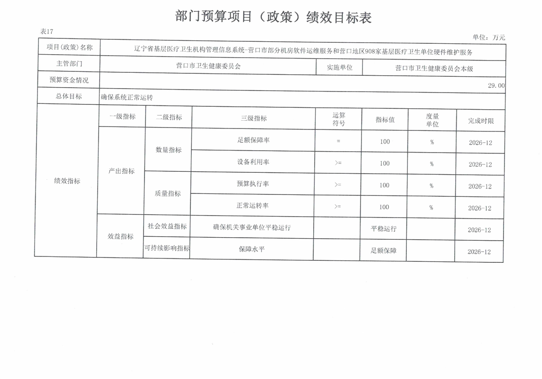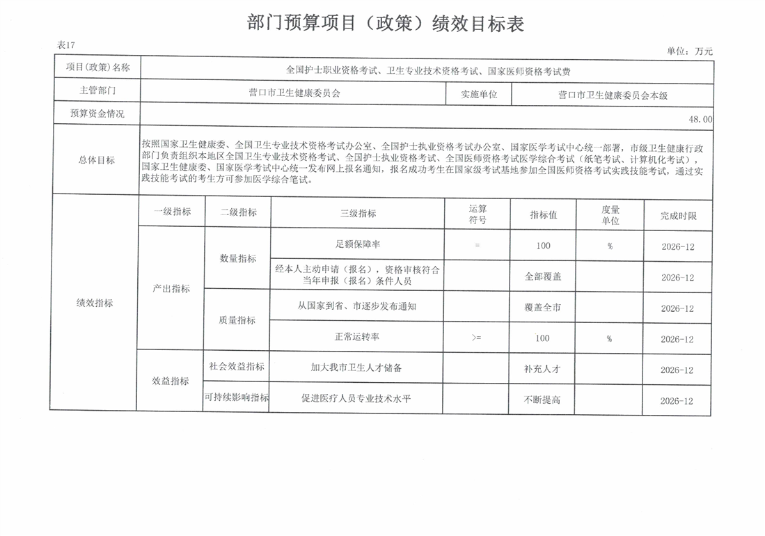 营口市卫生健康委员会本级2026年度单位预算