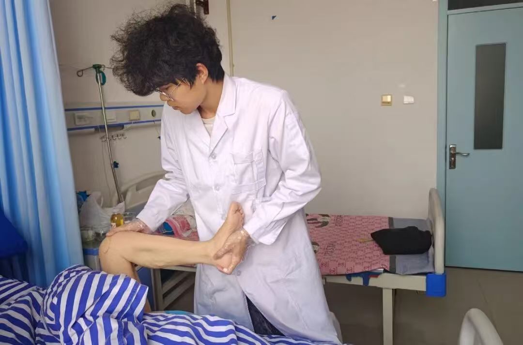 在治疗过程中,姚震始终将医患沟通贯穿始终。他耐心安抚老人情绪,用通俗易懂的语言讲解康复原理,实时反馈训练进展;训练中不断给予鼓励与肯定,及时倾听老人的身体感受,动态调整训练强度与方案。当老人首次独立完成简单转移动作时,姚震第一时间为她点赞,这小小的突破,彻底点燃了老人的康复希望,让她从被动配合转变为主动坚持。