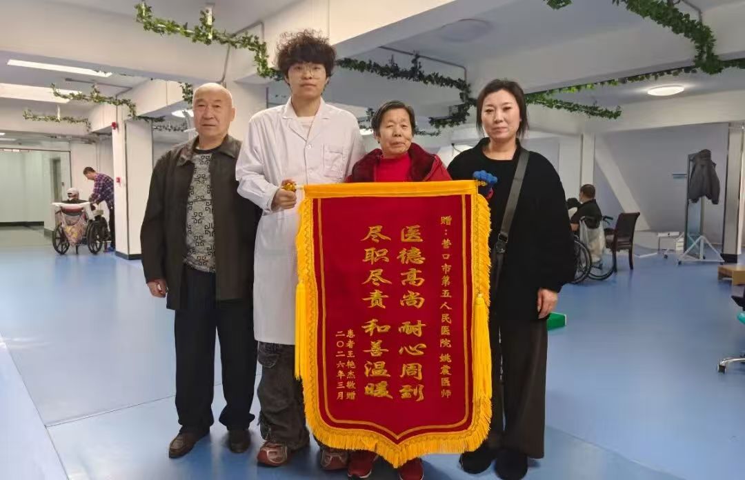 近日,市第五人民医院中医康复理疗科收到一份特殊的感谢。76岁脑卒中患者王阿姨及其家属专程来到科室,将一面印有“医德高尚,耐心周到,尽职尽责,和善温暖”的锦旗送到康复师姚震手中,以最质朴的方式,感谢他用专业技术与暖心服务,帮助老人从卧床不起重获自主生活能力,重拾生活信心。